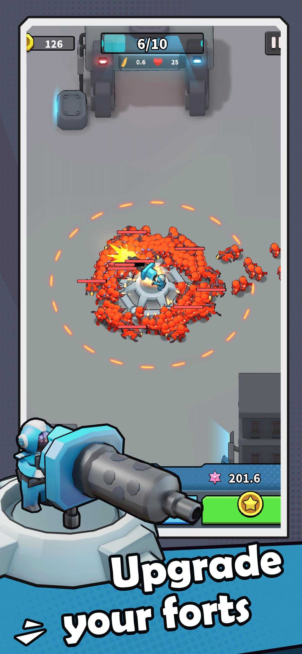 欢迎来到空闲堡垒防御: 尝试建造一个完美的堡垒,在这里你扮演一个孤独的指,挥官,你将使用最佳的战斗策略来统治战场,升级你的堡垒,收集具有不同功能的炮塔,并用它们来组装你的堡垒。 烧脑的挑战与休闲的完美结合,轻松休闲的挂机体验,简单的策略将带来巨大的好处。 让我们招募拿起武器,开始这场战争冒险。