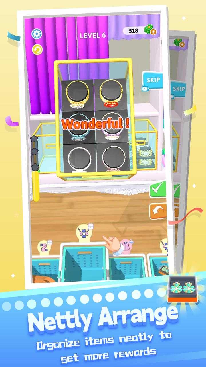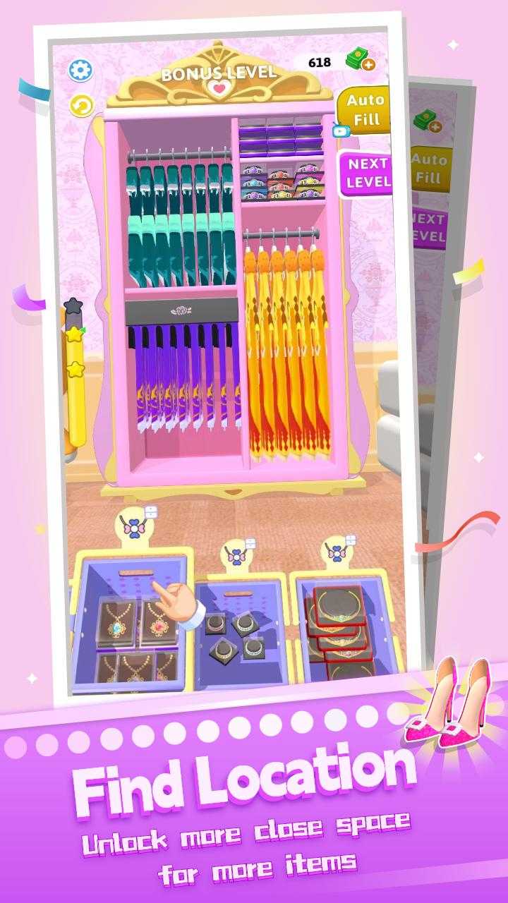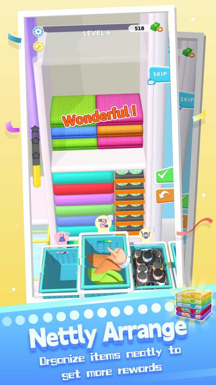 魔法壁橱 1.0.0 Magic Closet 是一款休闲分类游戏。看着完整的购物篮,您是否有决定组织它的冲动? 游戏亮点: 1.帮助您轻松减压,释放强迫症的压力。 2.多种关卡任务设置,给你不同的挑战。 3.简单流畅的卡通风格,给你舒适丝滑的视觉体验。 如何玩: 1.根据自己的方式、大小、物品类型进行分类,如何匹配完全取决于您。 2. 不同的关卡提供不同的物品,合理规划空间将帮助您更好地组织壁橱。 3.自由度非常高,你可以通过将大部分物品整理到壁橱中来进入下一关,充分展示你的整理能力。