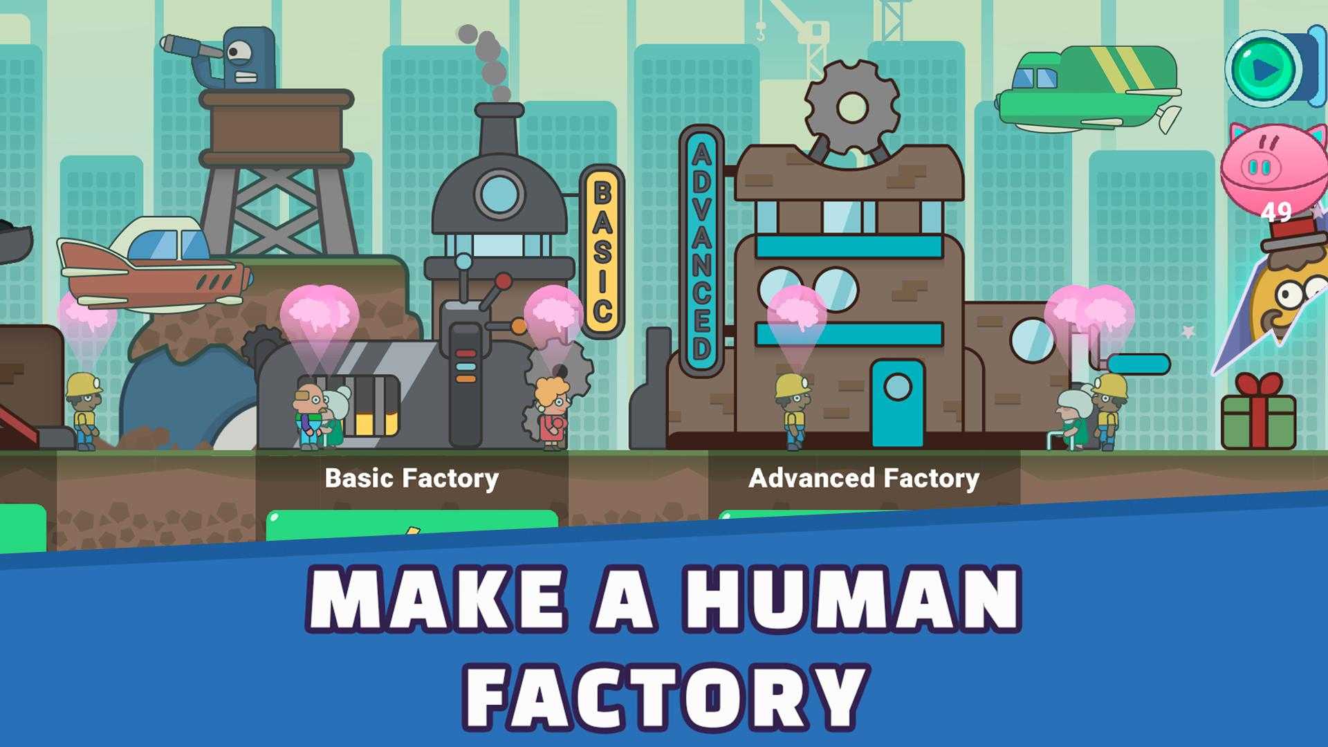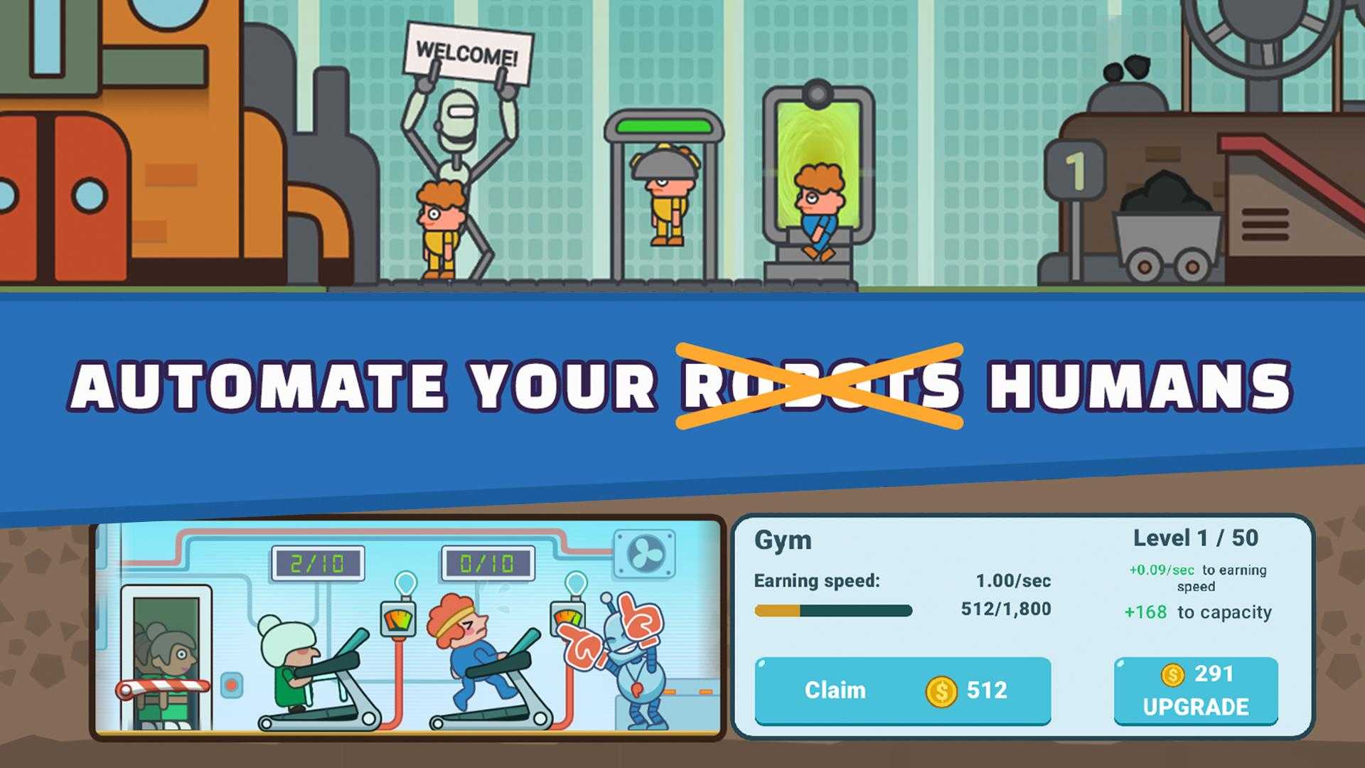 《空闲人类》是一款大亨模拟游戏,让您掌管繁华的采矿城市。这是一款关于完全懒惰的人的迷人游戏,机器人必须教他们如何勤奋。 你喜欢淘金者游戏吗?梦想成为资本主义亿万富翁的冒险?在这个闲置矿工模拟点击游戏中,您实际上可以成为最富有的工厂经理大亨! 《空闲人类》具有独特的空闲点击器机制,即使您处于离线状态,您也可以获得闲置资金并保持业务运转。给人一种货币挖矿模拟器的感觉,您必须不断平衡费用和投资,以最大限度地提高利润。 欢迎来到 Brainjolt 镇的人类康复试点项目!友好但脾气暴躁的机器人在这里帮助人类实现梦想,并再次成为社,会的高效成员。 作为闲置的矿工大亨,您将制作资源并管理它们以建造和升级工厂,发展业务以增加采矿产量并赚取更多金钱!如果您喜欢闲置点击大亨游戏和赚钱模拟器,那么这款游戏非常适合您。