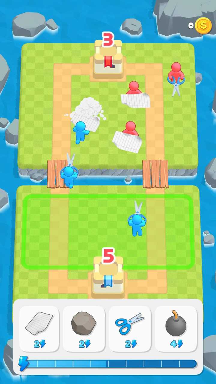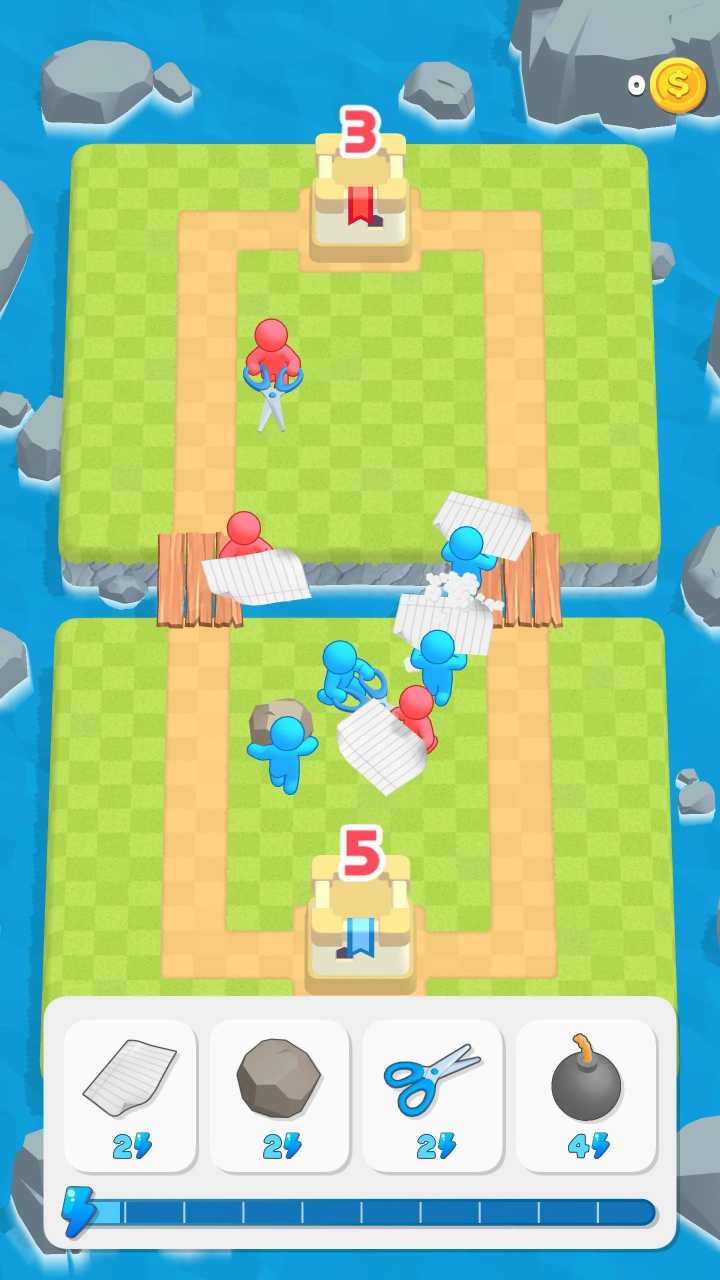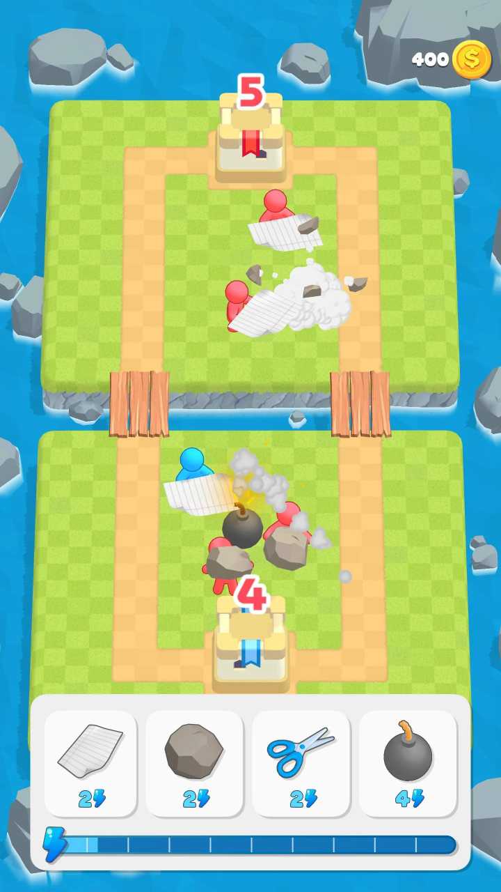 1、《剪刀石头布大作战》游戏中,不需要联网就可以操作的休闲小游戏,游戏的画面很简单清爽,适合所有的年龄段玩家玩
