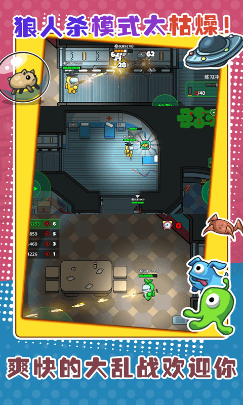 1、《太空狼人大乱斗》游戏中,新奇的射击,多种异域情怀的体验感可以让你体验淋漓畅快的玩法。