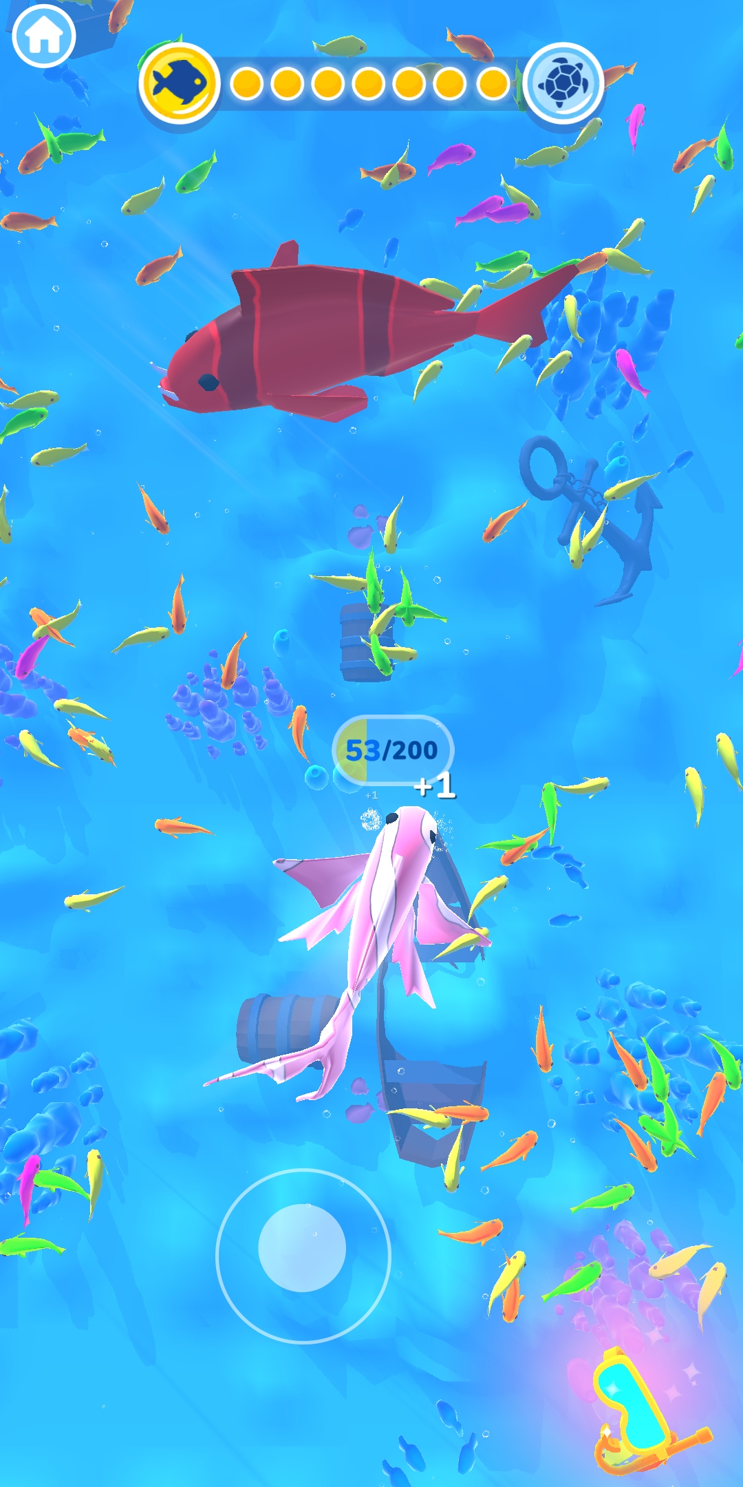 海里有更多的鱼:你渴望进步,一切都是为了喂养和成长,在游戏的每个关卡中都会有数百种小型生物可供享用。不过不要忘记,食物链上总有一些东西同样渴望以你为食。这是适者生存!