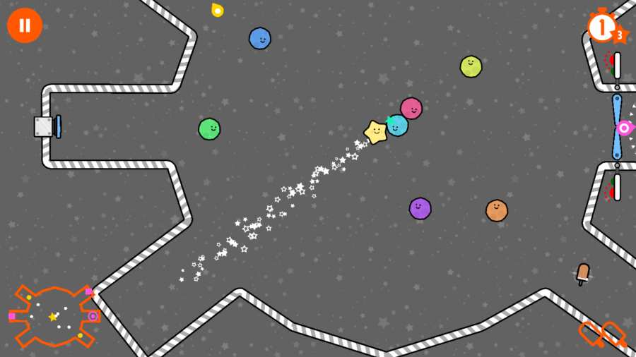 引导“小彗星”在太阳系中的探索旅行。 在每一个星球旅途中,会结识新的朋友并收集糖果。 其中有重力磁场、太阳风暴、电围栏、引力等干扰“小彗星”到达虫洞,通向下一个星球的旅行。