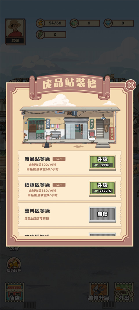 游戏画面精致细腻,仿佛百年前的小镇,民风淳朴,生机勃勃。玩家可以通过点击屏幕来获得金币,然后使用这些金币来招募员工,提升员工的技能和属性,或者是去购买各种装备和道具。每个员工都有自己的特殊能力和技能,可以大幅提升玩家的收益和利润。玩家还可以建造各种设施,比如商店、工厂、餐厅等等,来进一步扩展自己的业务。
