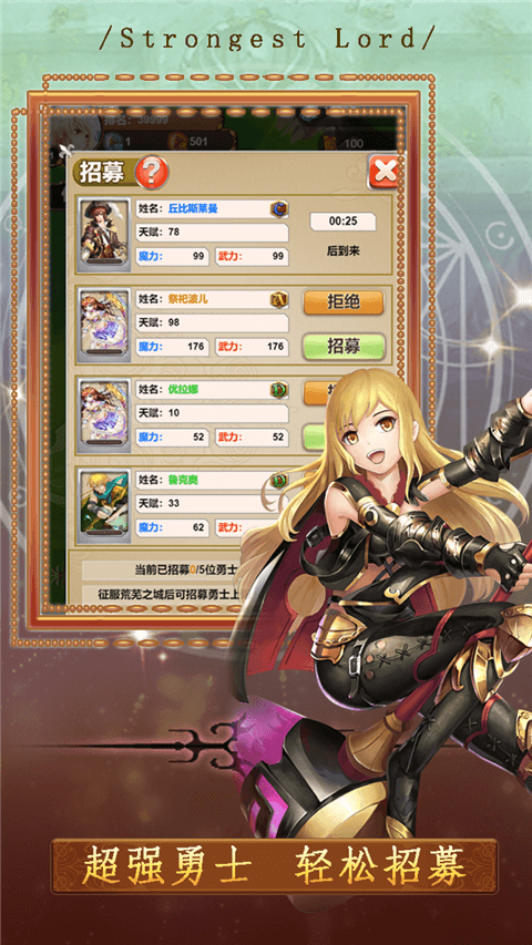 在《最强领主》中,玩家需要扮演一位领主,管理自己的领地,建设城池,招募士兵,发展经济,提升科技,与其他领主进行战争,最终成为最强的领主。
