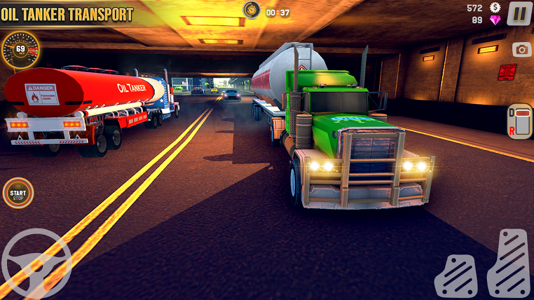 在 Truck Simulator Driving Games中,您可以享受美国各地的美丽风景,从城市的拥挤街道到农村的甯静小镇。您需要在旅途中加油、修理车辆,并确保您的货物安全到达目的地。完成任务可以获得货运合同的奖励,可以用来购买更好的车辆和升级现有车辆的性能。