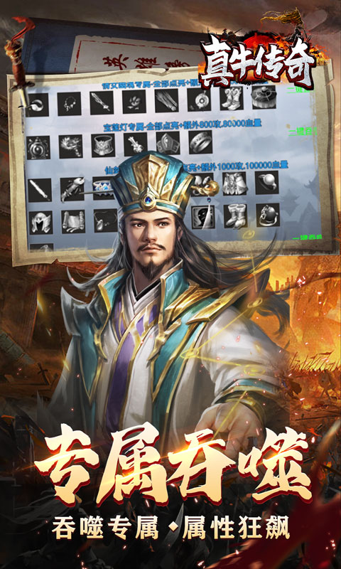 真牛传奇(三国爆爆爆超变),三国超变光速刀版本,登陆送十万元宝,海量材料!超高爆率!免费会员,暴增属性!助你称霸三国!全新吞噬专属系统,激活专属套装属性,更多特色玩法,几百张特色地图,等你来探索,活动boss无限刷!准点攻沙,等你称霸沙巴克!全新独家超变三国版本来袭!还在等什么,快来加入吧!