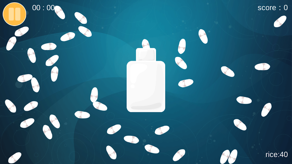 进入游戏把40粒小糯米装进酒瓶子里,每装进一粒得10分