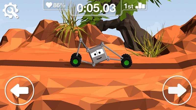 是一款考验玩家动手能力的制作游戏,游戏中玩家需要按照自己的想法打造赛车,而你的赛车需要通过各种复杂道路的考验,你要保证它不会散架、翻滚等其他意外状况的发生,展现你的想法的时候到了。