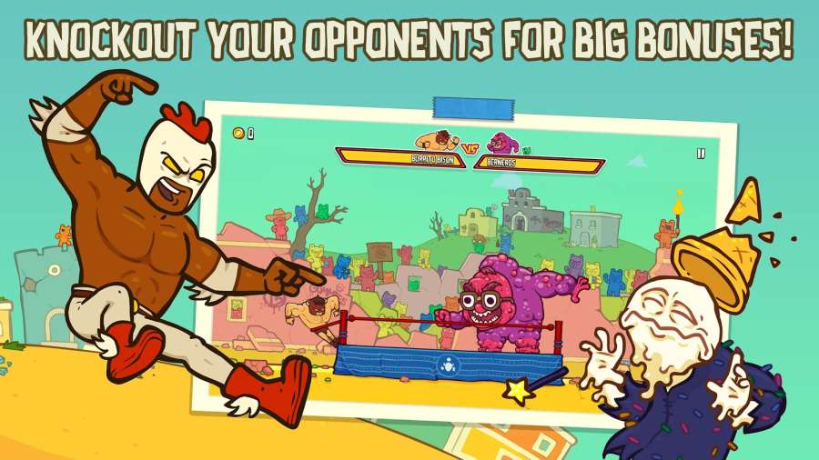 《野牛复仇记 Burrito Bison: Launcha Libre》卷饼野牛来了,他还带来了伙伴们!最受欢迎网络游戏之一的最新一期中,卷饼野牛与新伙伴们加入:菠萝桶和El Pollo会弹射、崩裂、吃蛋糕、打碎、飞行、并在天空翱翔以防止软糖入侵!