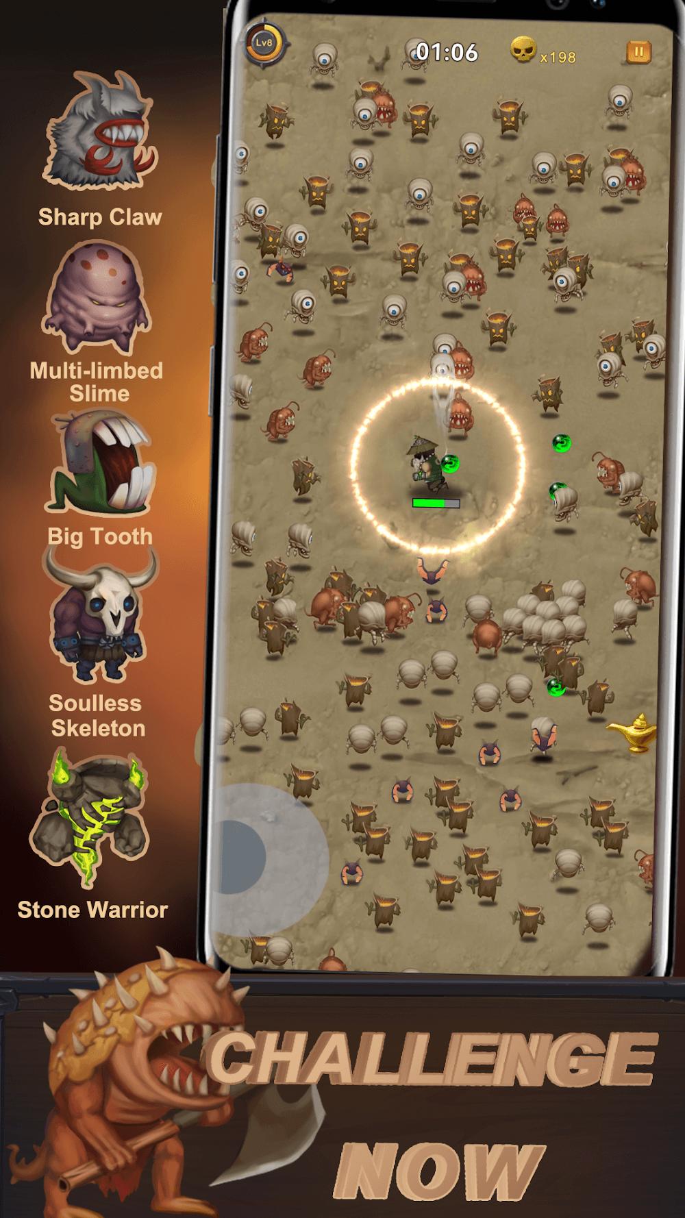 生存传奇Survival Legends: Random Skill》无数怪物从四面八方追逐你的英雄。你需要控制英雄逃离怪物。如果你在逃跑过程中升级,你将获得随机强大的技能。逃跑并杀死。
