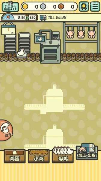 gg的新悠闲小游戏!今天你就是这个充斥着小鸡和鸡蛋的鸡场场长了!请在工厂内加工小鸡产品,然后卖出产品购买更新小鸡!扩大工厂规模吧!