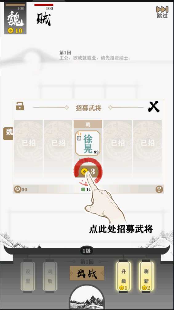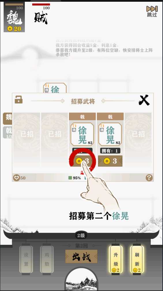 使用足够的金币招募英雄时,金币不减反增,解锁势力!