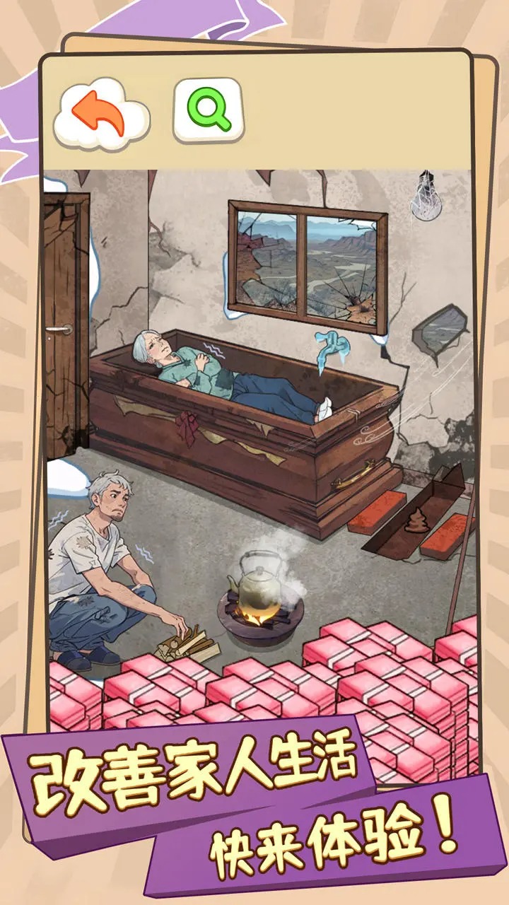 在《改善家人生活》这款游戏中,你需要使用养老金,帮助舍不得花钱,在冷风中冻得瑟瑟发抖的家人们改善生活,快来帮家里人做点什么吧。