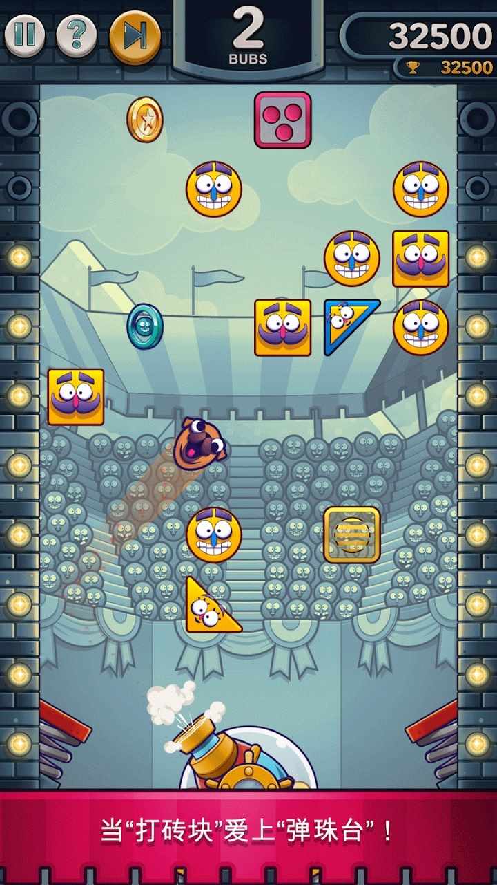 打砖块”爱上了“弹珠台”,角度与重力一个都不能小视! 仔细瞄准你的每一发炮弹,来体验这款全新的打砖块游戏吧! 组合增强器,最大化你的破坏! 在这款疯狂而别具一格的“打砖块”游戏中,挑战好友和自己吧! 精确计算每一发炮弹的轨迹,向最高分挑战 Blasty Bubs游戏特性 经典打砖块玩法 * 在重力效果的影响下,自下而上进行射击! * 灵活运用缓冲器来拯救你的球! 使用增强器,让爆破效果最大化! * 分流器可使炮弹分解为多个! * 幽化器可使炮弹穿透砖块! * 爆燃器可使炮弹击破护盾! * 灵活组合全部3种增强器,炸个痛快! 将障碍各个击破 * 上膛、瞄准、射击,炸毁一切! * 破坏障碍并保持连击,以获得更高评分 障碍们的能力和属性也各不相同 * 又能移动,又会消失! * 抓住最完美的发射时机! * 为了应对你的炮弹,有的障碍竟然还穿上了盔甲拿起了护盾! * 风格各不同 * 形状也各不同(方块、圆形及三角形) 在这款别具一格的“弹珠台”游戏里,和炮弹家族说哈啰吧! * 解锁全新的独家弹球! * 每个弹球都有自己独一无二的样式和属性哦! 挑战你的好友和你自己吧 * 你能突破自我极限吗? 透过新的瞄准策略和弹球来打破自己的记录吧 * 你能拿到比你好友还高的分数吗? 当“BBTAN”在Blasty Bubs里遇上“幻幻球”!瞬间成为弹珠杀手!
