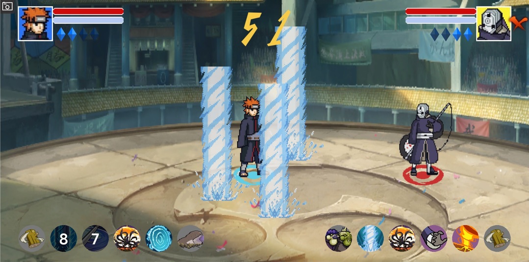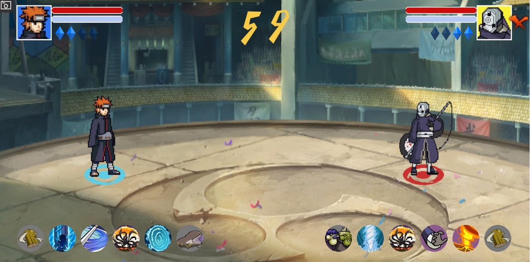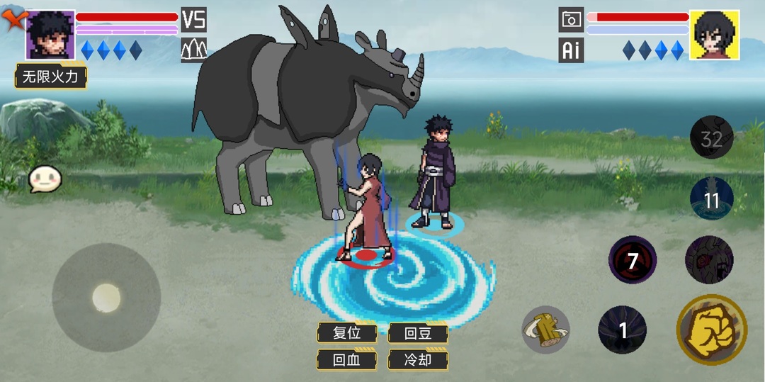 像素风火影格斗。 由B站up主:U鼬神 自制