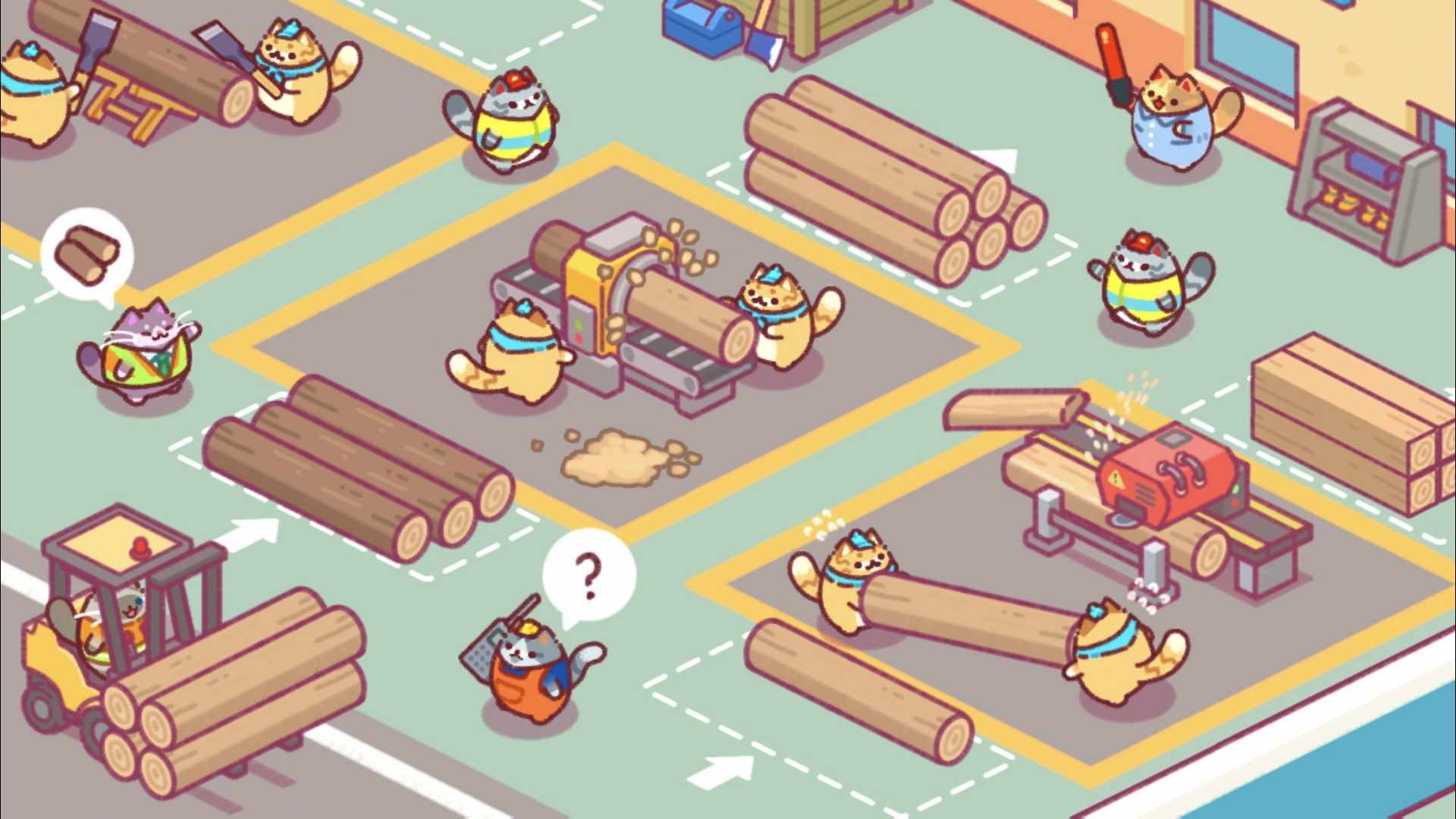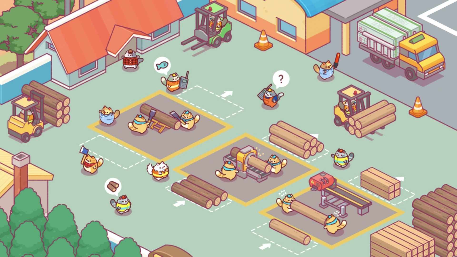 即使你不在,猫也会让你的木材厂继续运转!你的帝国蓬勃发展,因为敬业的猫工人不知疲倦地管理你的业务。