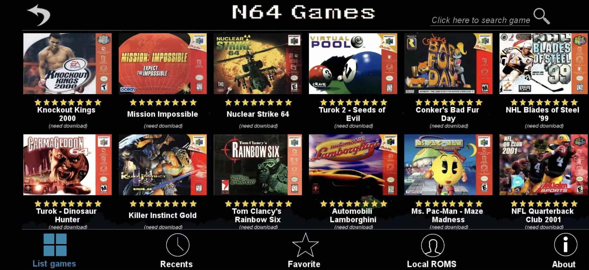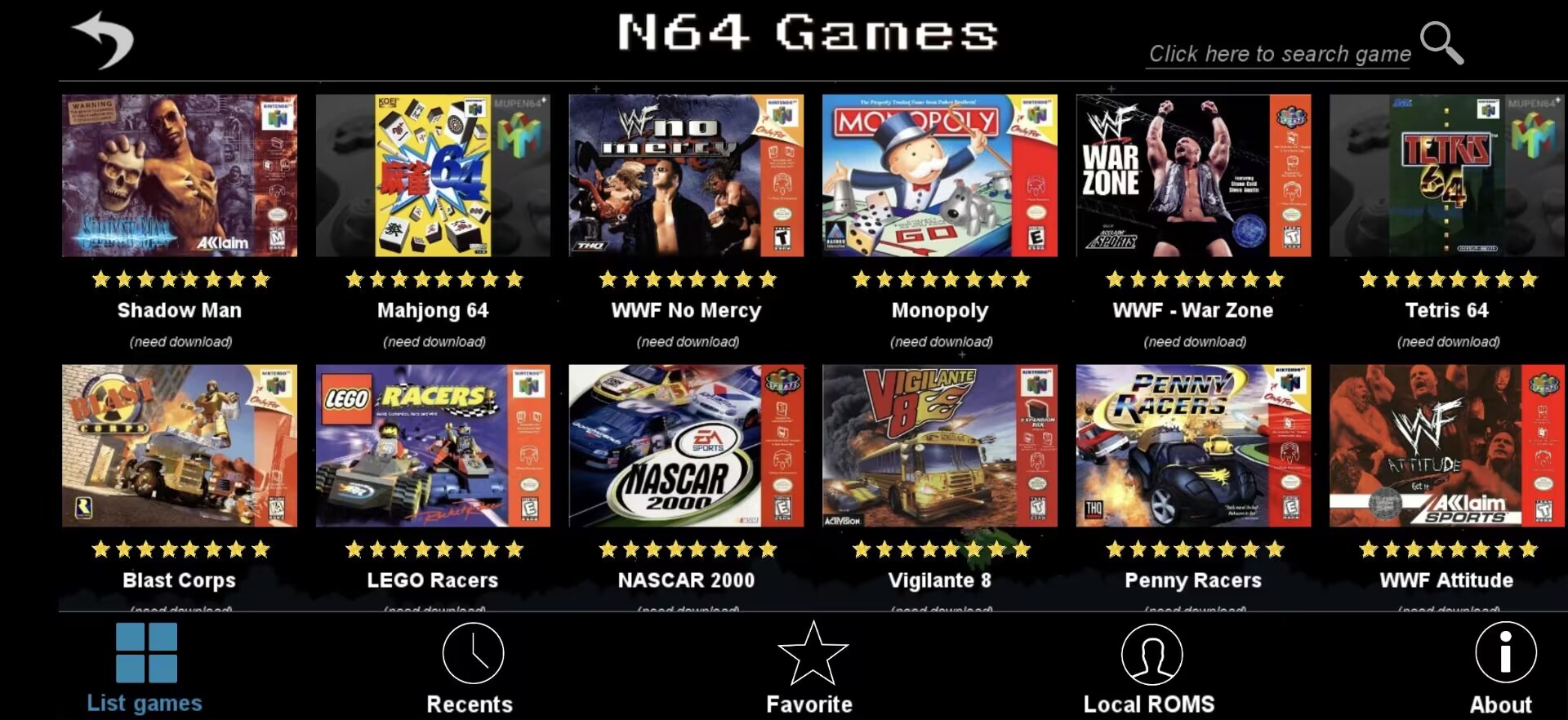 适用于 Android 的复古游戏模拟器允许您从设备下载演示文件或上传 ROM 文件,并享受自己喜欢的控制台游戏。