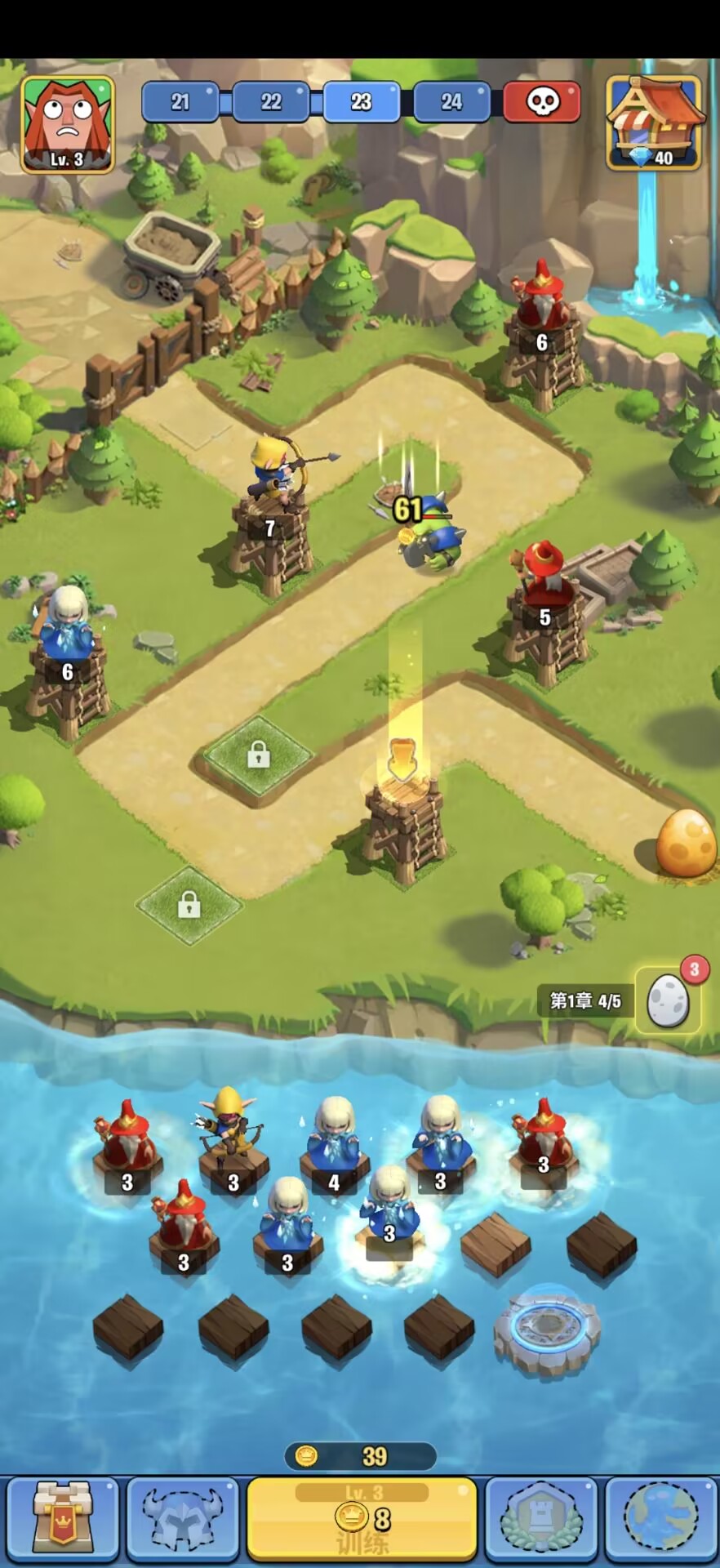 训练并合并您的士兵以防御敌人。不同的防御阵型可以让战士使用更强大的能力!