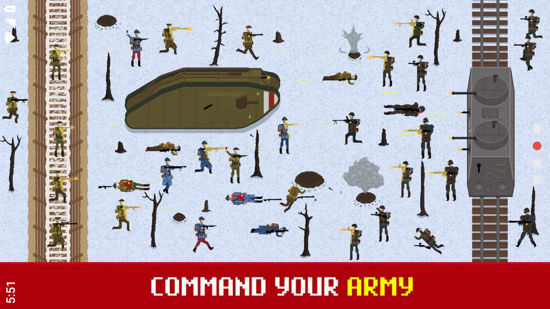 参与实时战略战斗(RTS),你的目标是选择士兵和坦克的正确组合来征服敌人的战壕。在一波又一波的敌方士兵中生存,因为他们试图赢得战场的控制权,并利用战术炮击来支持你的部队。你能在敌人的战壕攻击中幸存下来吗?