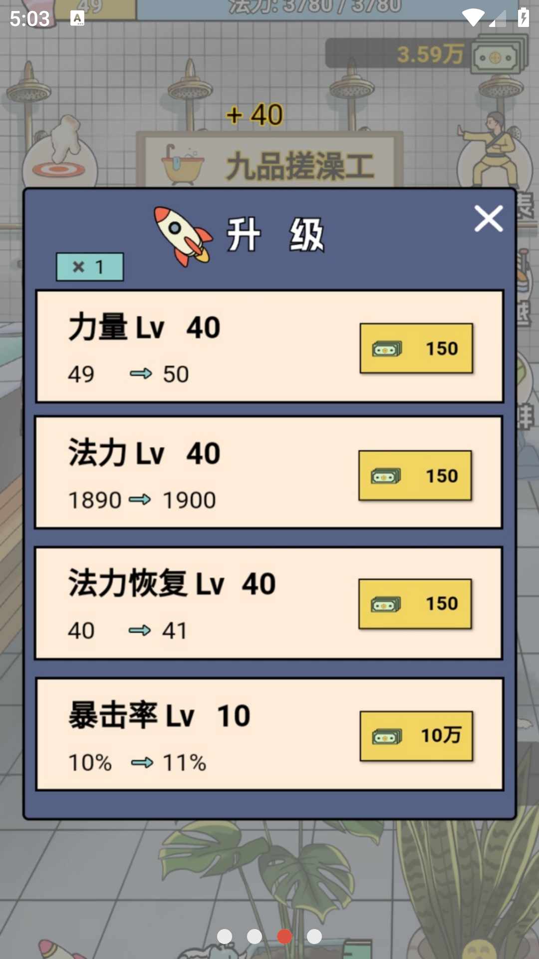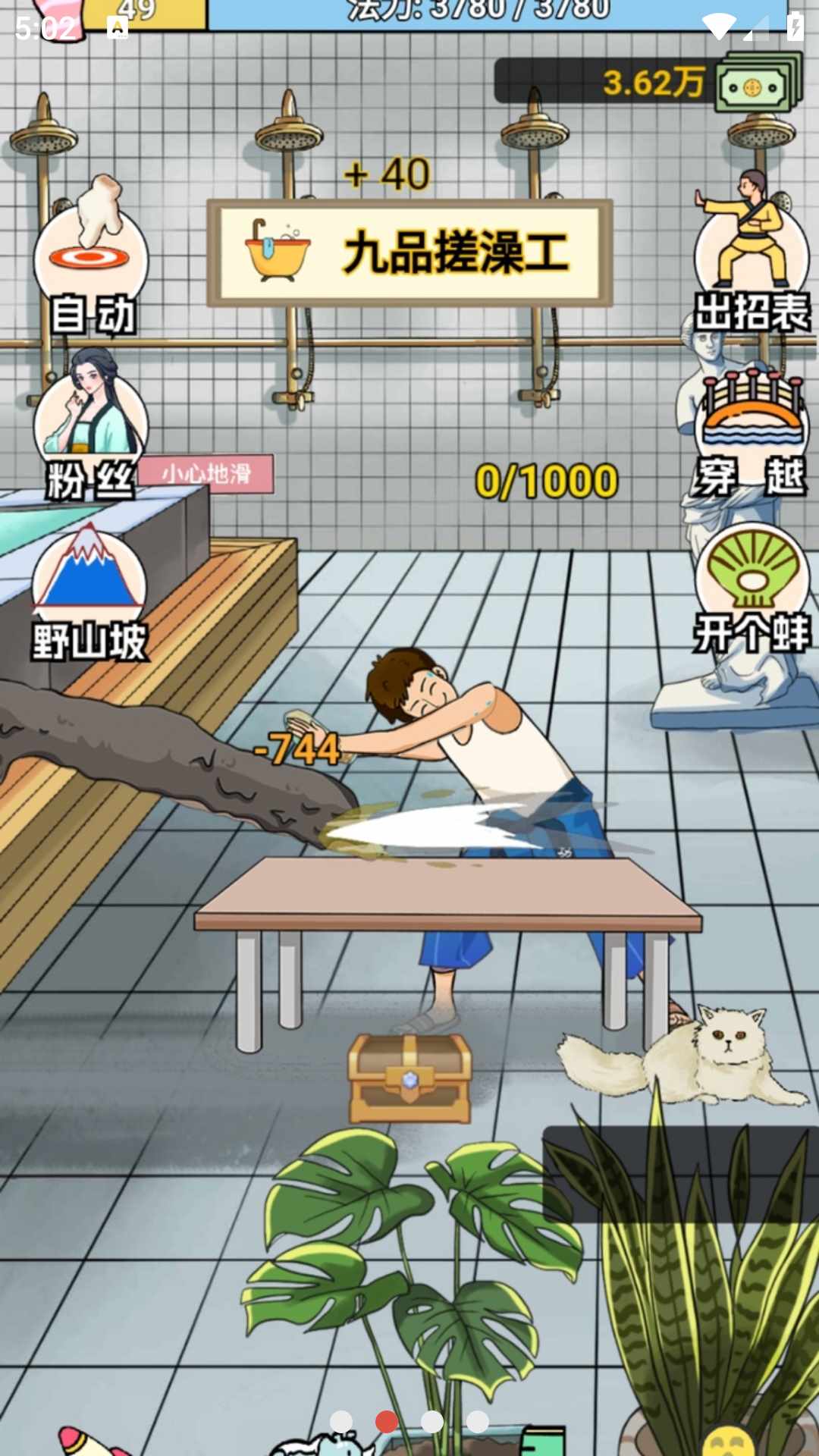 多种搓澡工具、保健品和装饰物品,购买并使用道具来提高搓澡店的服务质量和吸引更多顾客。