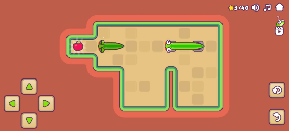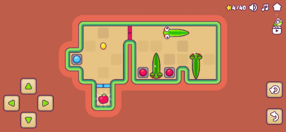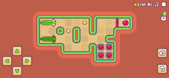 小蛇解谜是- -款可爱的益智游戏,您必须帮助一条小蛇找到它们最喜欢的零食:苹果!蛇喜欢苹果,但不幸的是,它们总是显得太远或被锁在门]后。幸运的是,这条蛇长得很快!通过吃黄豆,蛇可以变大。这可以帮助他们到达遥远的地方或同时按下多个按钮-有了这种力量,解决谜题变得更加可行!蛇不是你最喜欢的动物吗?没问题!还有大量其他动物需要解锁,例如毛毛虫或鱼。如果您陷入其中一个关卡,请不要担心,您可以随时寻求有用的提示!你能帮助你的蛇逃脱并得到所有的苹果吗?