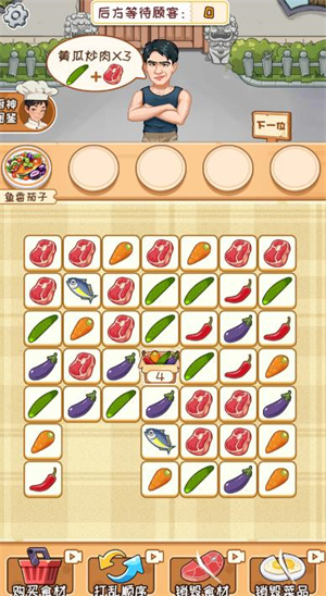 你将通过连线的方式来消除各种食材制作美食,通过消除这些食材来制作出顾客需要的美食,解锁更多的食谱体验不同的乐趣,制作出更多的美食完成更多的订单任务,不断闯关来尽情体验最有趣的闯关冒险。