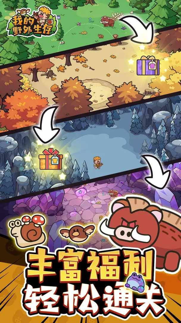 《我的野外生存》是一款站桩塔防生存挑战游戏。玩家需要通过合理的技能升级和资源分配,站桩防守各种野兽的进攻,不断击退兽潮,保护自身的游戏。游戏的创新站桩塔防玩法可以使玩家摆脱繁累的局内操作,轻松的享受游戏乐趣!