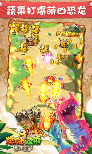 燃烧的蔬菜3游戏下载是一部在内容方面显得非常丰富的作品,内容上看游戏在道具、任务和关卡等不同的方面都进行了加强,而且挑战内容也在很大程度上进行了提升,设计了近百道不同的关卡,除了经典的主关卡之外作品中还衍生出了大量的支线关卡,这些内容在挑战完成任务要求后都能获得丰富的奖励,有趣的是你能通过有趣的内容完成一系列的战斗,小伙伴们在不断的进行挖掘,你要进行休闲的手游战斗,作为是《燃烧的蔬菜》系列作品的第三代,游戏中应用了全新的引擎为玩家带来了绚丽的画质,你要在其中操作指挥蔬菜家族和强大的恐龙进行战斗,拥有前所未见的弹射塔防新玩法,还能在农场中查看自己的缺的物品,缺什么就种什么。