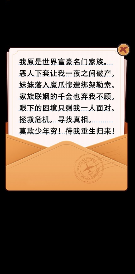 你原是养尊处优的富家大少爷,遭同行陷害后- -夜之间倾家荡产,背负巨额高利贷,亲生妹妹也被债主绑架;你需要在短时间内筹集大量金钱赎回妹妹,重振家族。同时你的命运也从零开始,经历各种困难与陷阱后重启人生,走向巅峰!