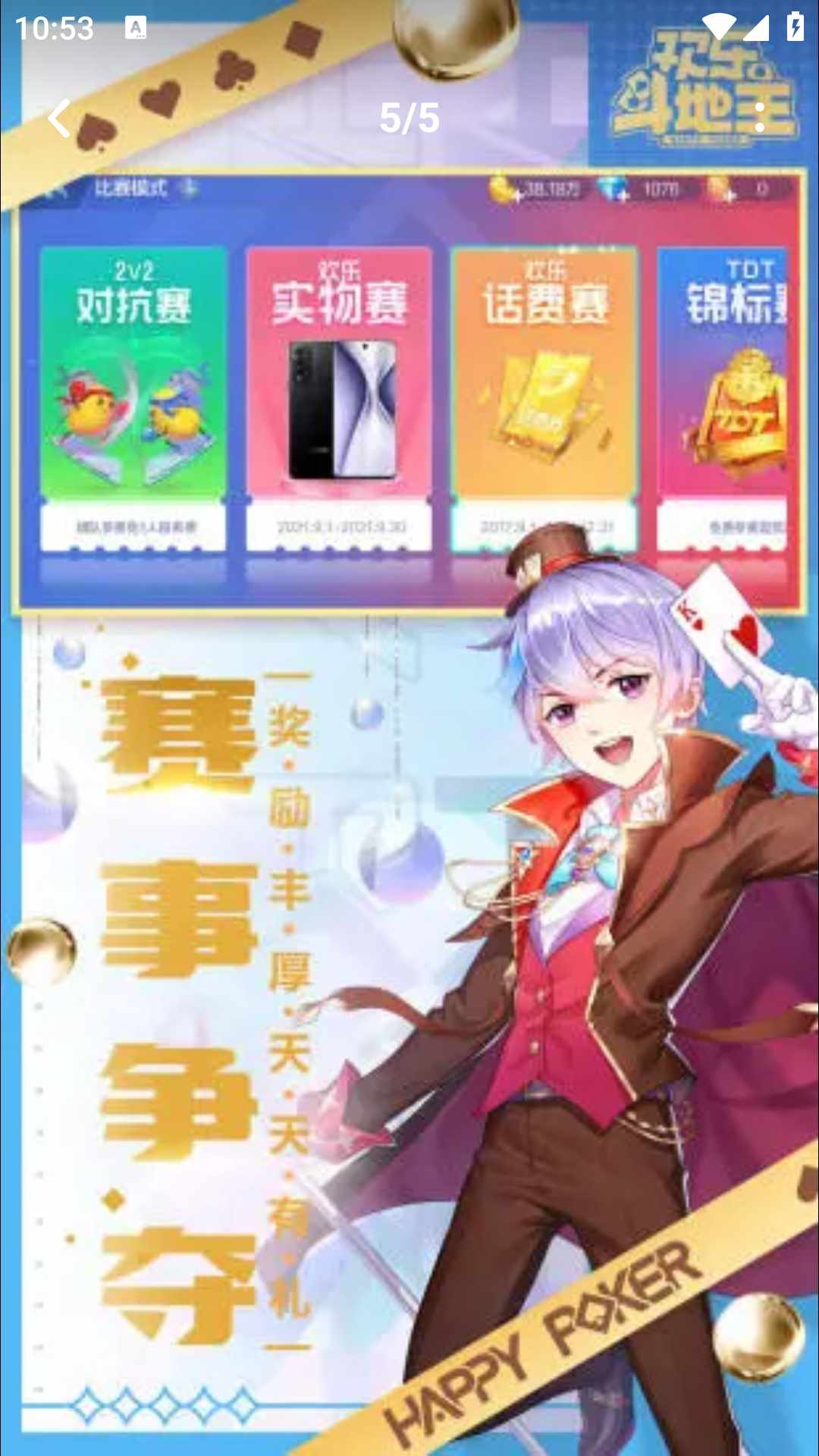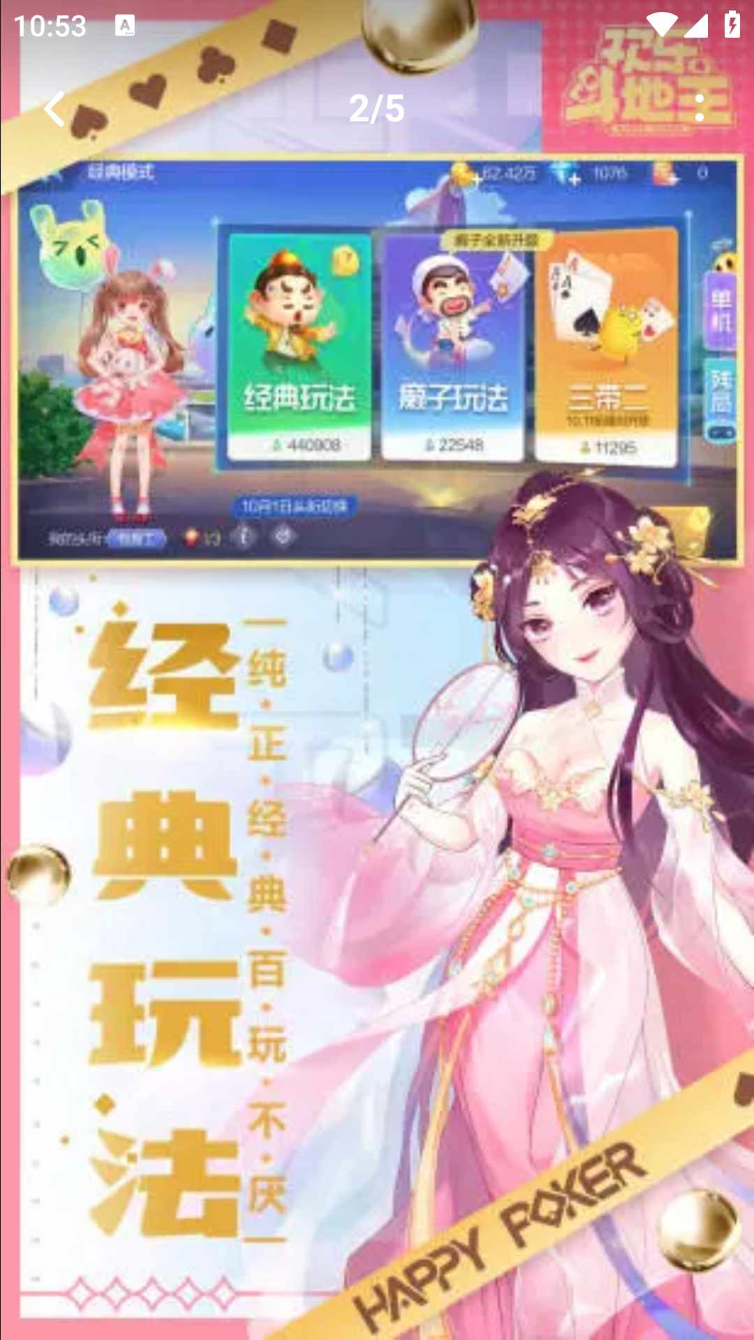 10年经典棋牌品牌,腾讯游戏精心打造,与6亿玩家一起《欢乐斗地主》!【最纯正的经典玩法】经典玩法+癞子玩法,全民牌技PK!抢地主,明牌,加倍等玩法,对局乐趣精彩不停!【最丰富的竞技玩法】新鲜有趣的三颗心玩法,角色百变,技能升级!【最刺激的赛事玩法】丰富多样的赛事模式,挑战赛爽快刺激!【高品质的游戏体验】场景化的游戏界面,感受最真实的斗地主;丰富趣味的动画,增添更多欢乐元素!【全新的社交体验】邀请好友一起开私人房,给好友送心送豆,请好友一起做任务!高分炫耀,连胜比拼,好友互动不停!