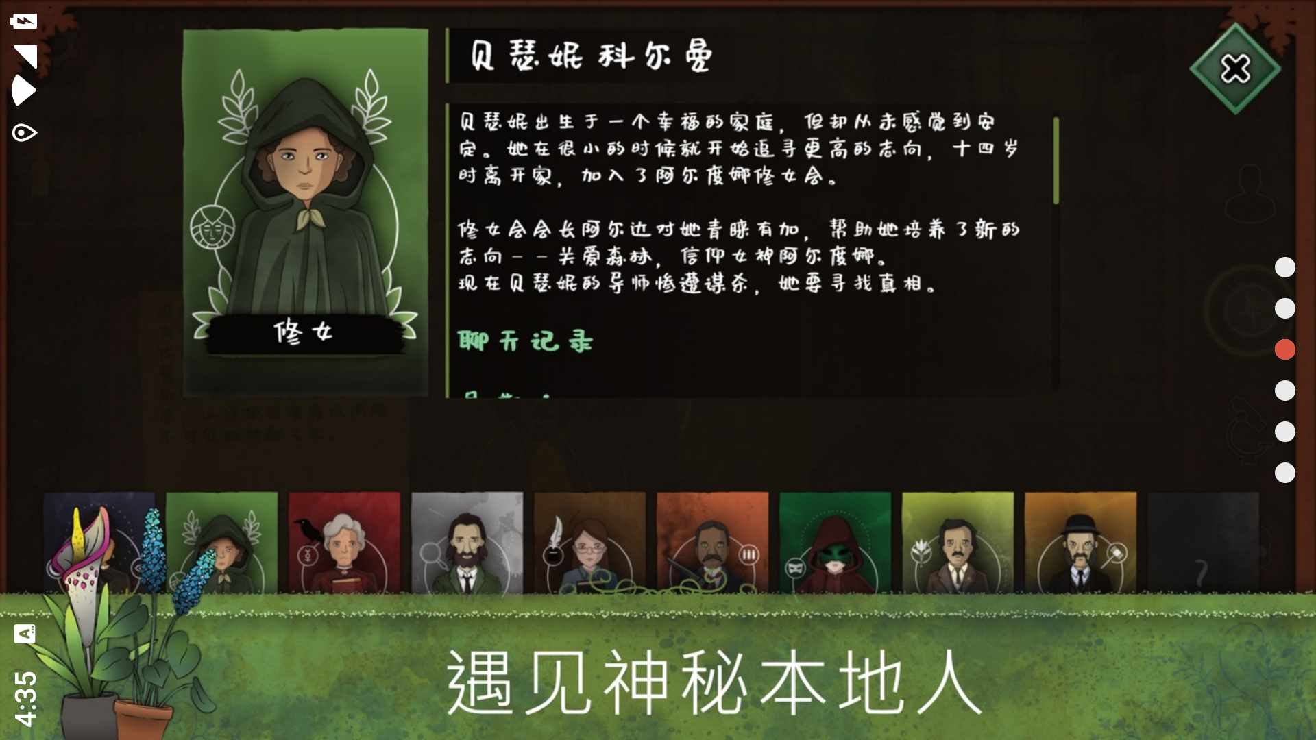 值得信赖的百科知识和探索途中发现的线索可以让你进一步了解你遇到的奇怪植物。通过识别每种植物,你将能够利用它们的功效来影响故事走向——从催眠幻剂到致命剧毒,应有尽有。