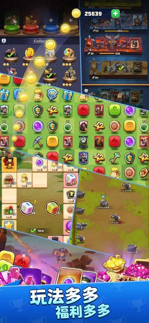 “三消+卡牌+竞技”三大经典创新融合,既保留了传统三消经典休闲,同时加入卡牌的策略搭配,更有竞技PK的酣畅淋漓!