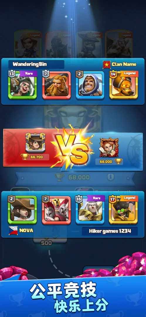 镜像挑战,神秘英雄挑战,选卡挑战,速战速决,领主挑战,巅峰对决,锦标赛,疯狂角斗场,周赛!不受现有卡牌收集和成长的约束,加入势均力敌的战斗。