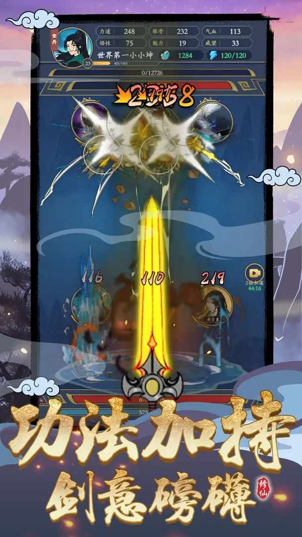 战斗方面我们想尽可能突出主角在剑道方面的造诣,三种心法都围绕剑的表现去展开。