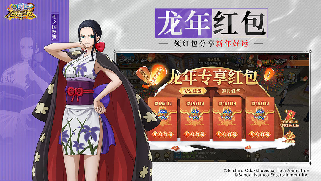 2、全新剧情线,为了救回阿玉,路飞,佐罗与阿菊闯进博罗镇。博罗镇内正在举办相扑大会,浦岛当众求婚阿菊,后续更多精彩的故事等你来看!