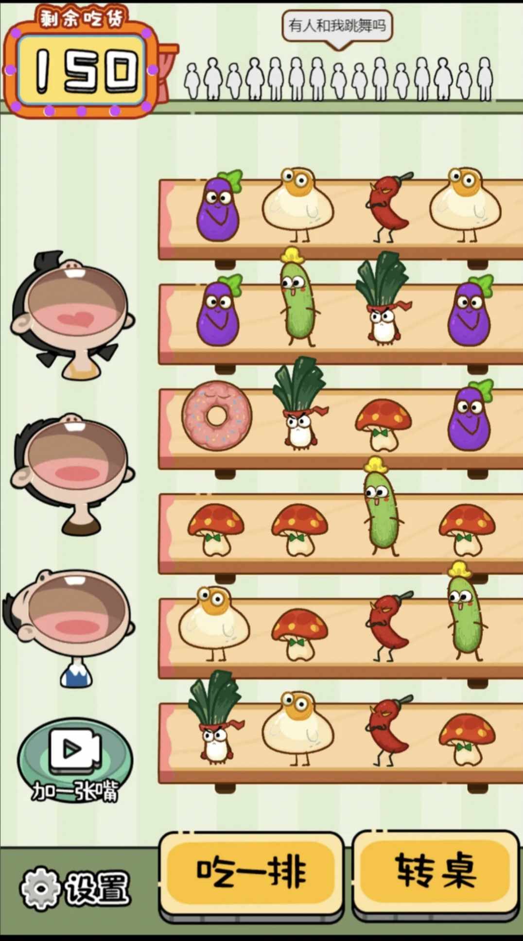 1、点击三个相同食物,喂饱一个吃货;