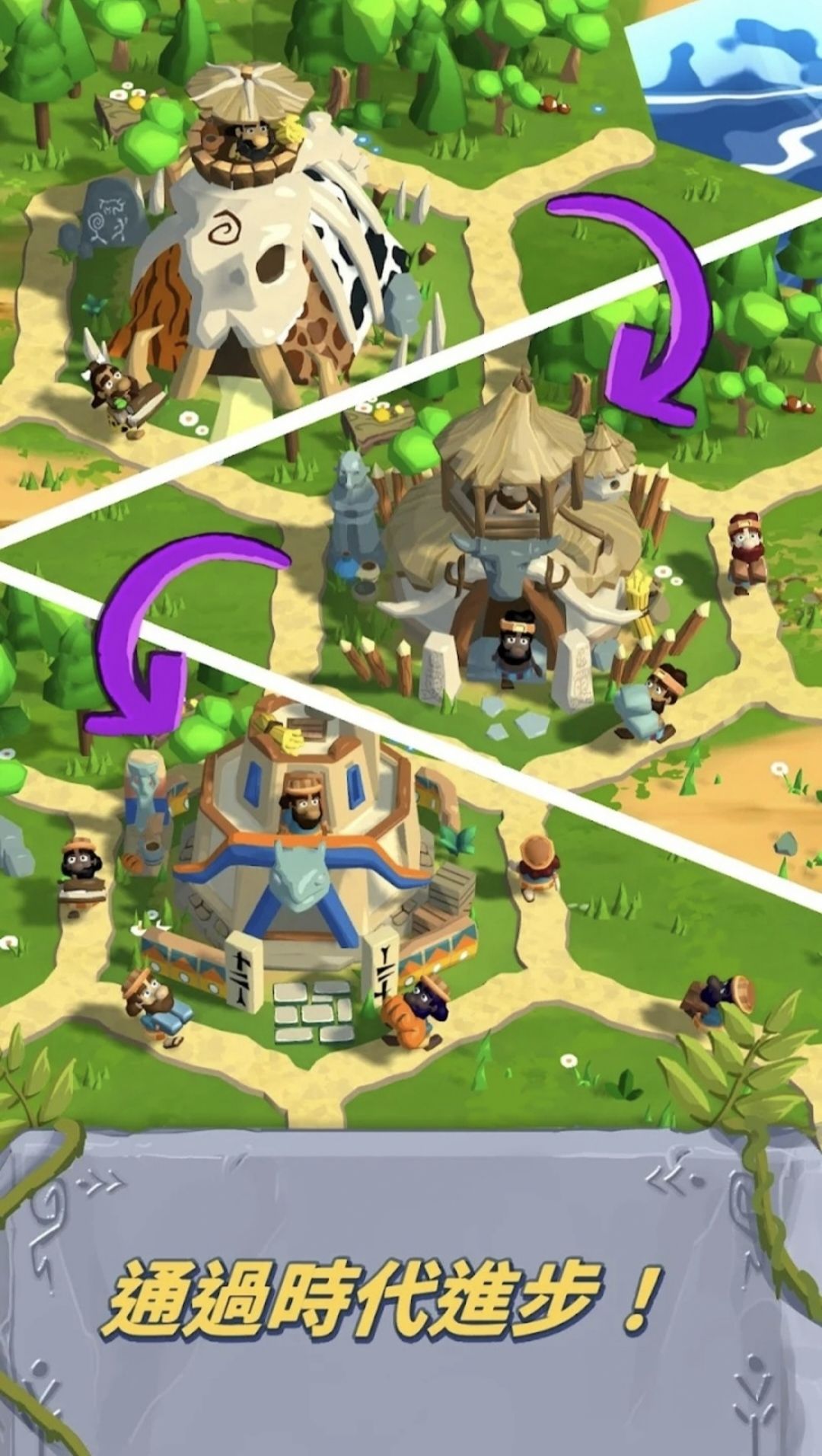 处理与扩张:从史前时期开始,利用石头和木头创造基本资源。策略性地处理复杂材料如木板、青铜和铁,推动您的部落走向伟大。闲置模式下也能受益——全时推进您的游戏。