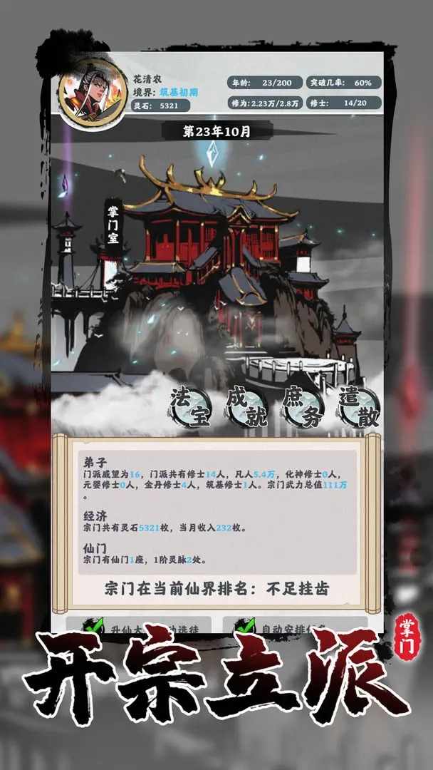 修仙掌门模拟器是修仙门派模拟游戏,在游戏中,道友不再是一人孤独求道,而是需要带领你的门派共赴大道。