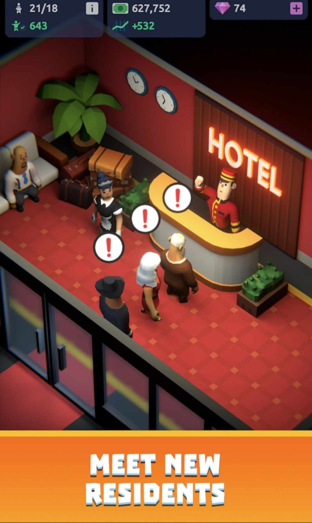 但是,不要只是坐下来放松!你玩的越多,你赚的就越多。使用您的利润来解锁新酒店,升级您的房产,并扩大您的帝国。