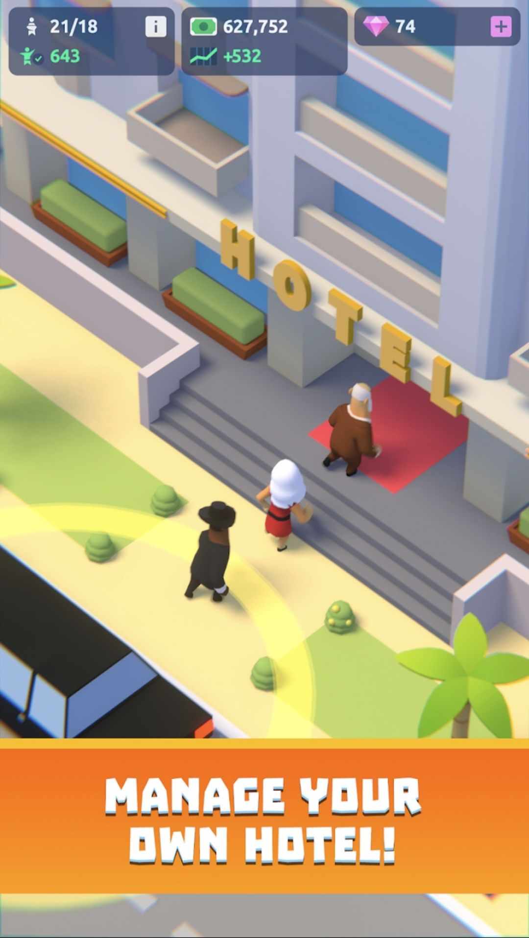 凭借令人惊叹的图形、令人上瘾的游戏玩法以及发展帝国的无限机会,《酒店大亨》是任何曾梦想经营自己的酒店的人的完美游戏。