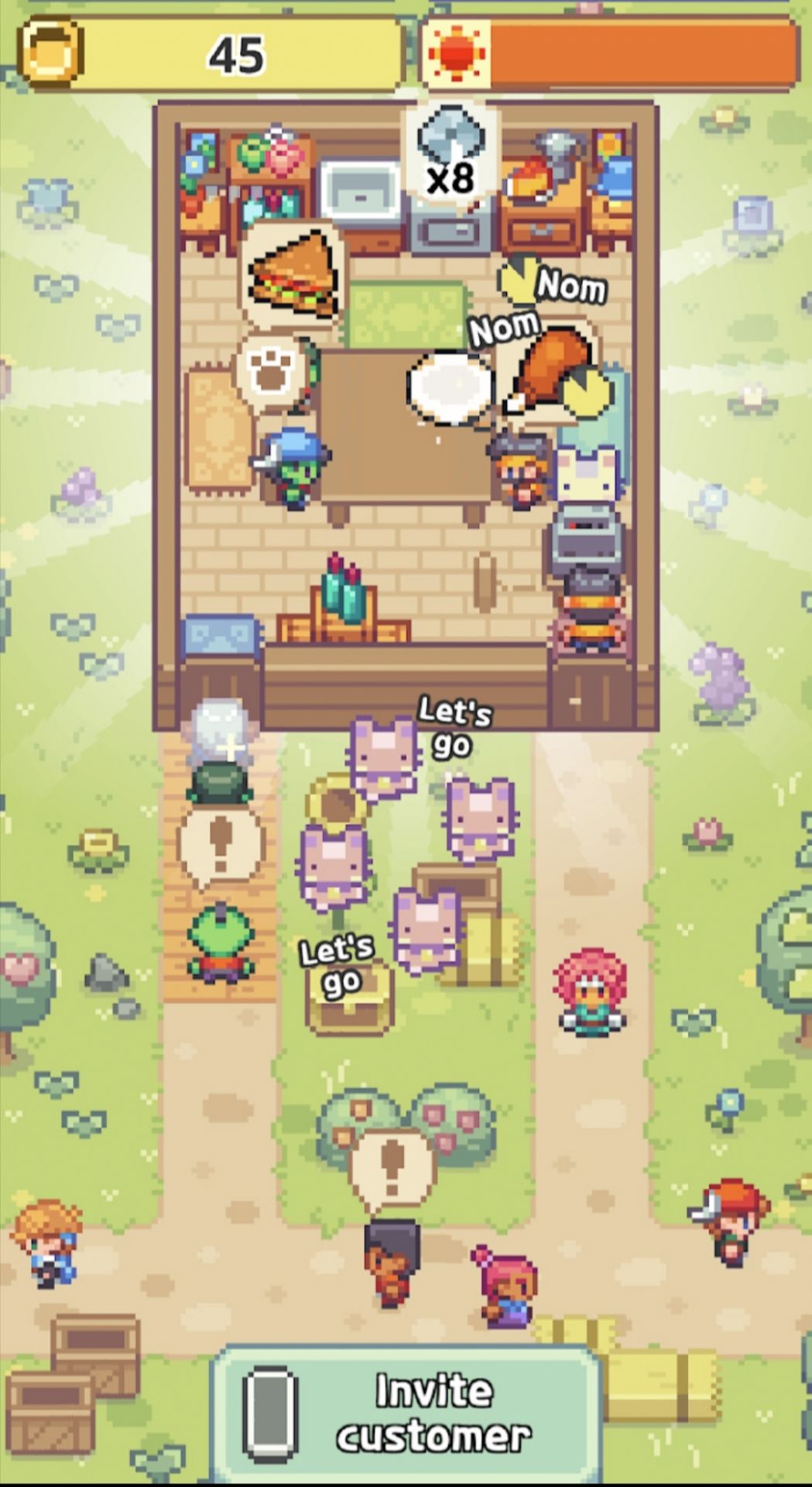 一旦开始营业,尽可能多地将你的菜肴销售给顾客以赚钱,喵!