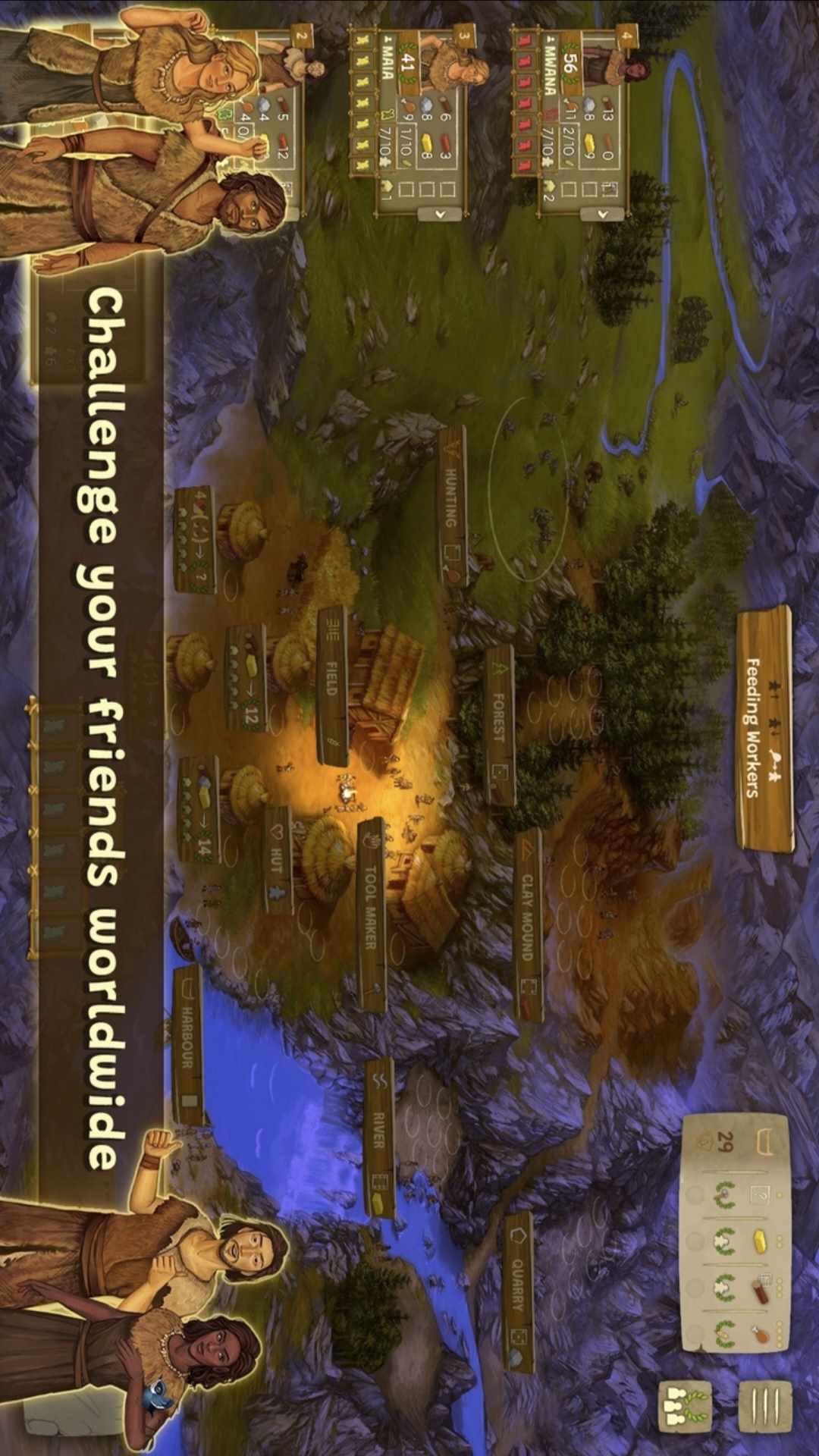 在石器时代,空间数量有限,因此您必须确定每轮采取的最佳行动。你可以通过收集资源、建造新建筑和发展部落文化来发展部落,同时还要保持足够的食物来养活你的人。