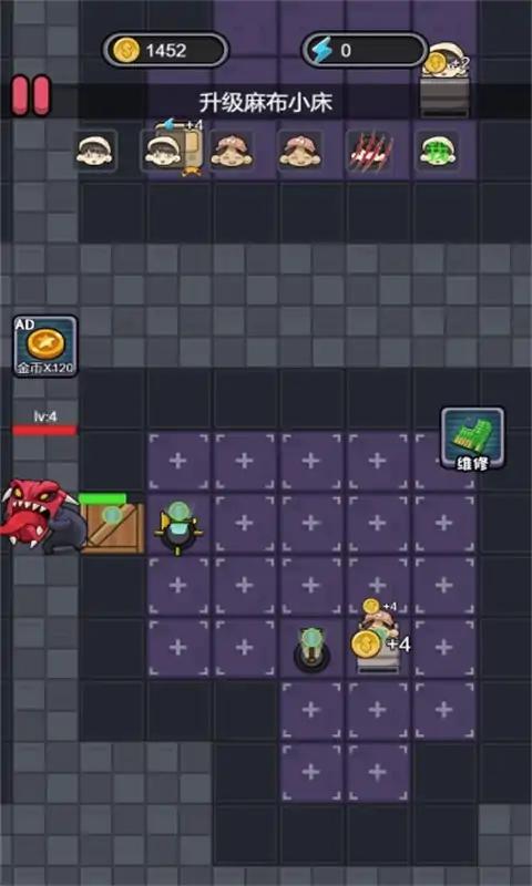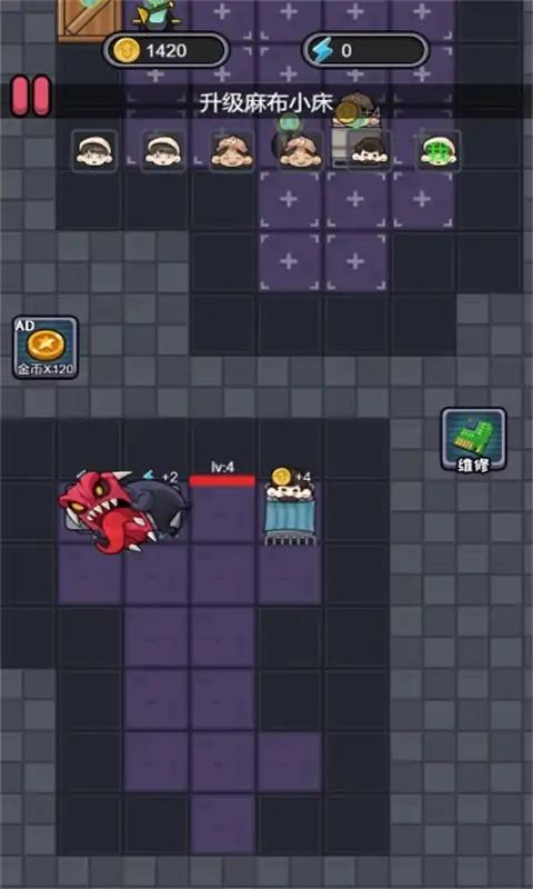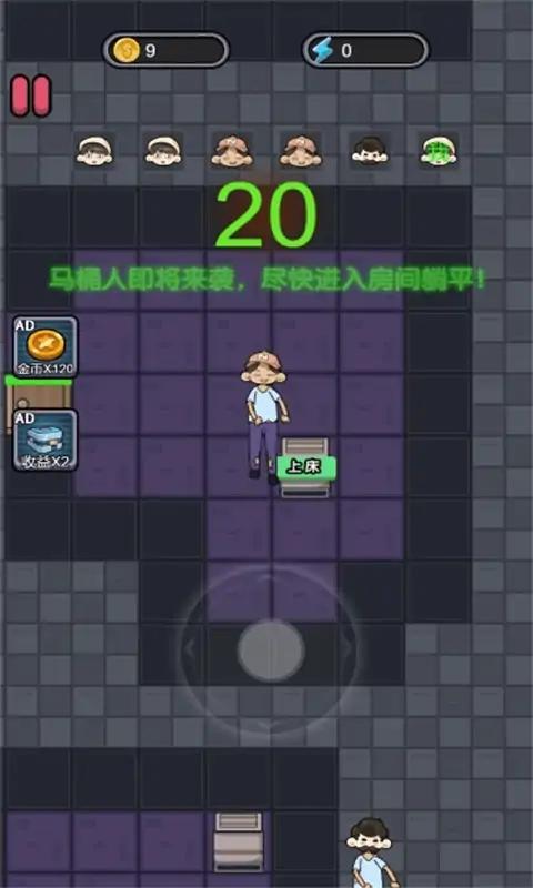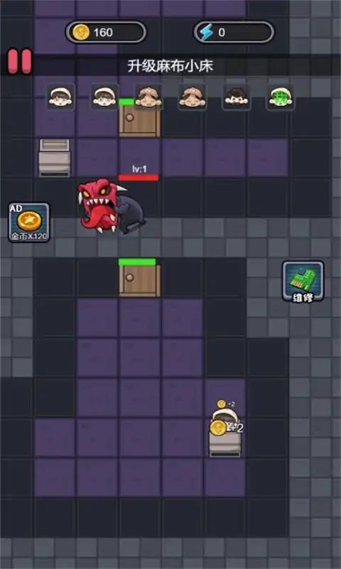 游戏中玩家只可以在房间中的空地板上进行建造,玩家点击空地板后,出现建筑菜单。游戏中玩家需要根据自己当前的经济选择性建造建筑,发现一条符合自己发展的道路。玩家需要将鬼击败或者抵御至天亮方可获胜,反之鬼抓到玩家则玩家失败。躺在床上就能赚钱,用你的钱购买建筑,建立你的设施和防线,共同抵御猛鬼吧!