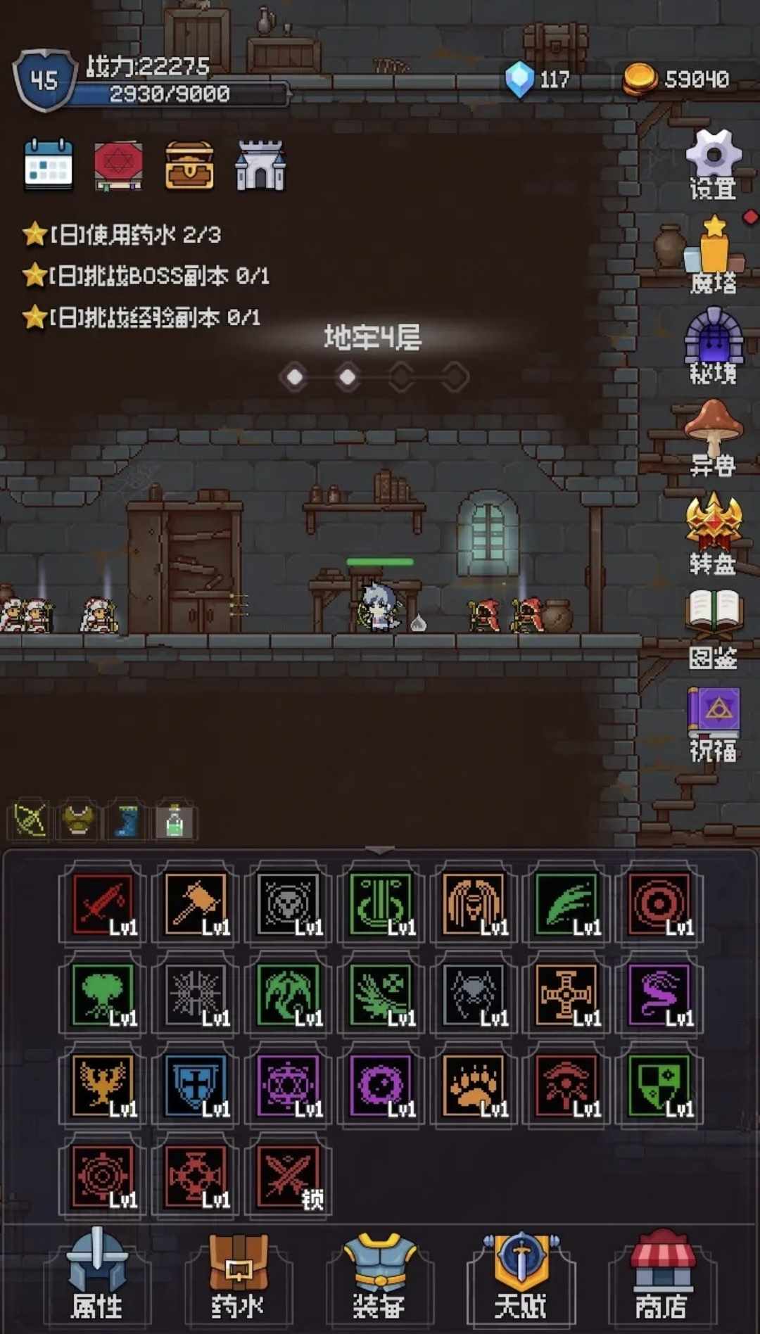 超级解压的像素挂机游戏, 通过不同武器的搭配释放不同的技能.