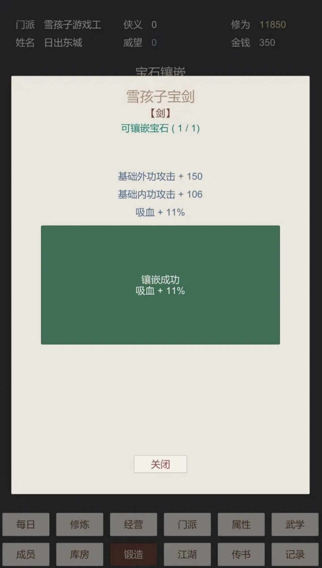 玩家扮演一个机缘巧合得到高人指点,武功小有成就。高人将发扬门派武功的重任交予玩家后便离开。玩家在游戏中可以创建武功,招收弟子,打造兵器,游荡江湖等。