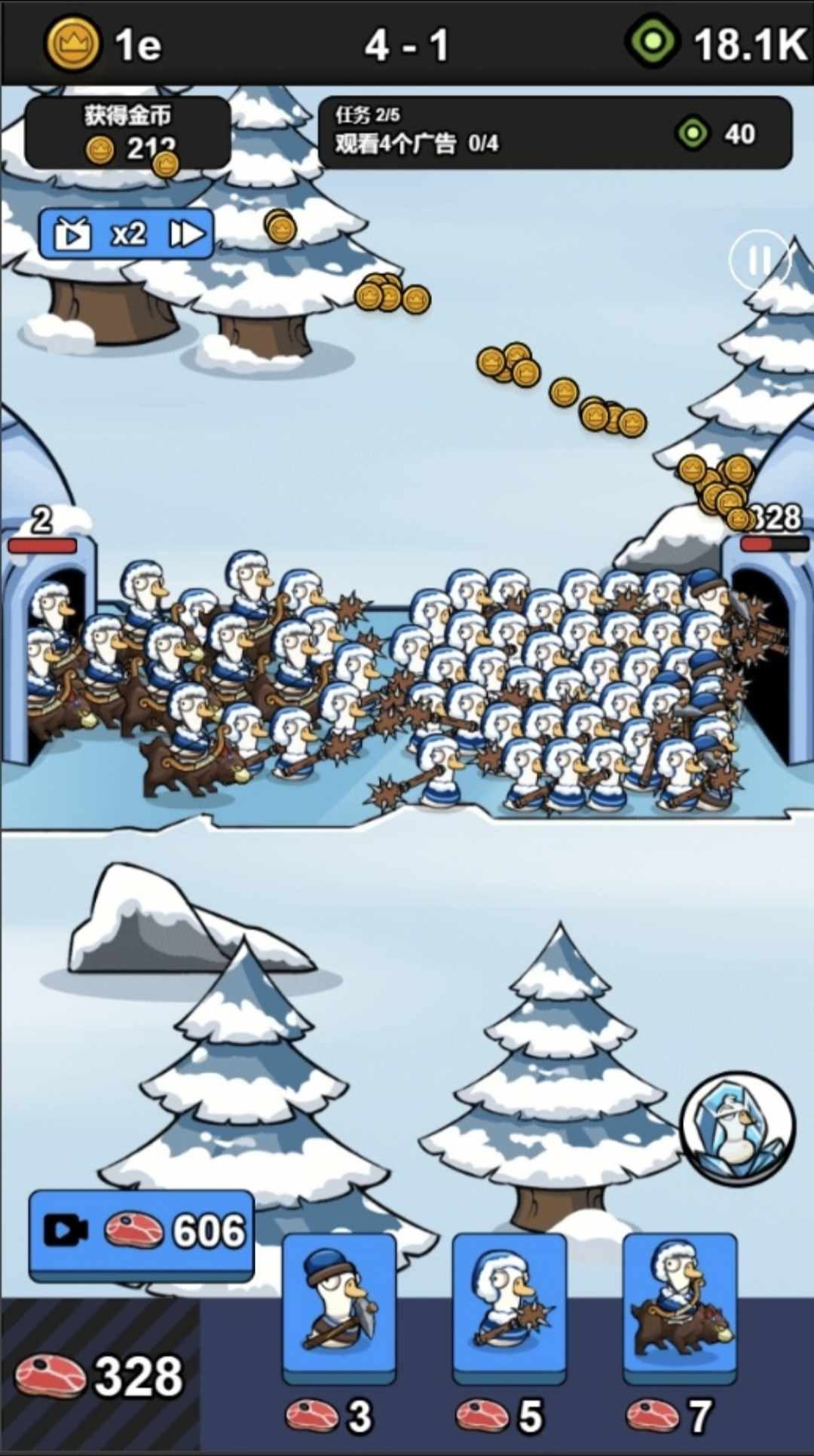 《进击的鹅鹅》是一款独具创意的战争策略游戏,玩家将化身为一名鹅鸭战士的统帅,在不同的时代召集部队,征战历史,实现世界统一的壮举!