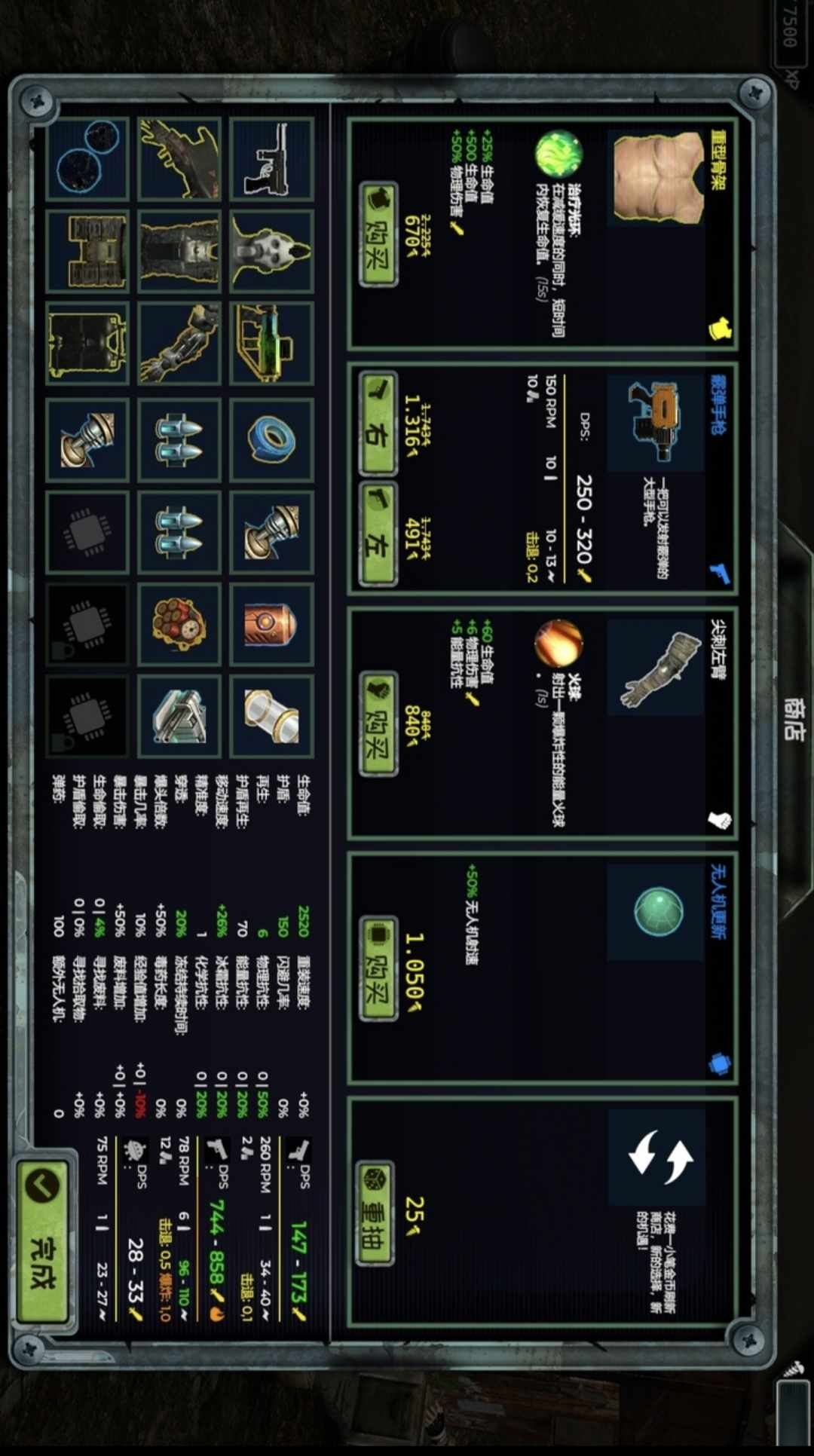 - 收集废料在关卡之间购买或升级物品或身体部位