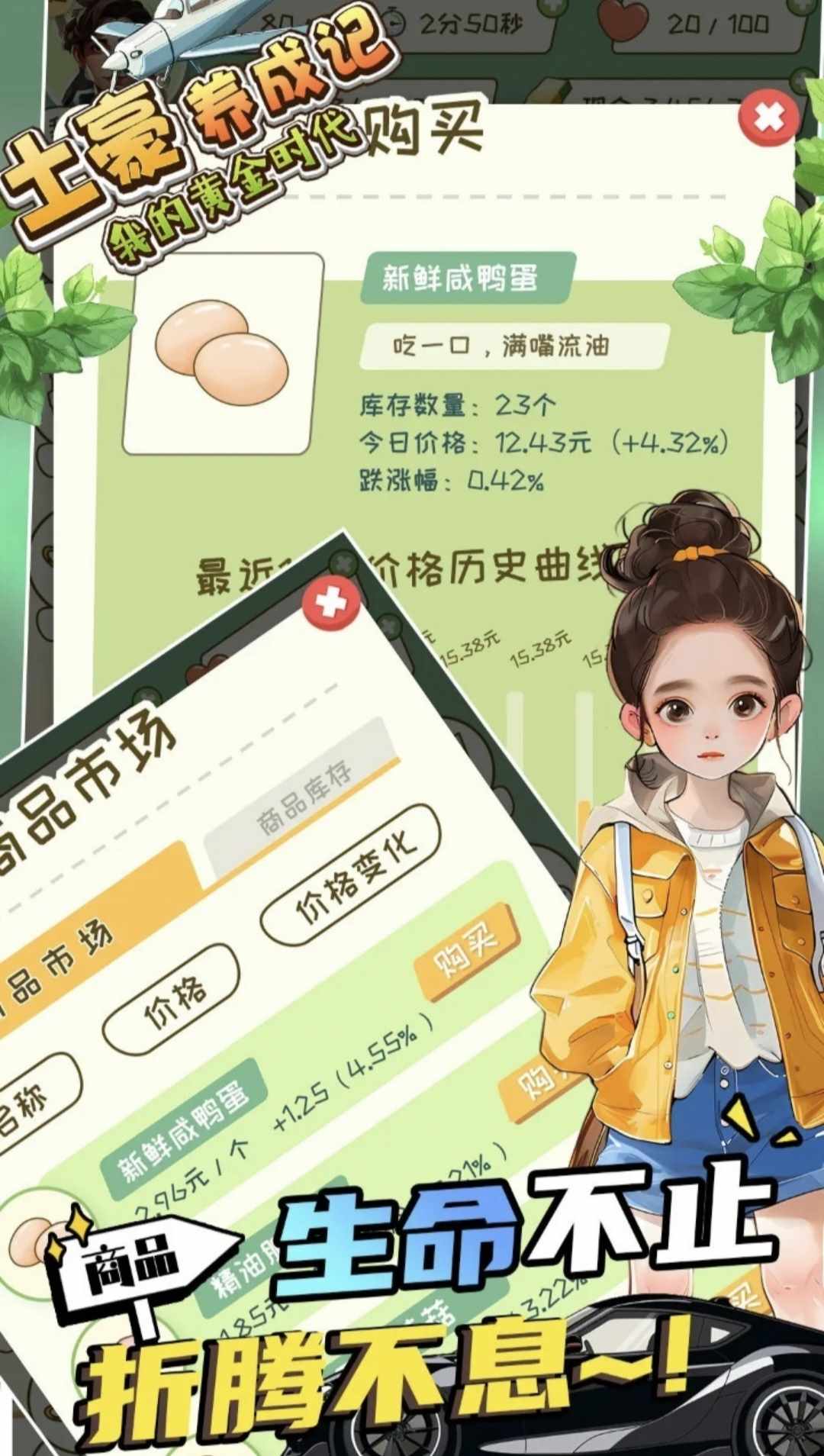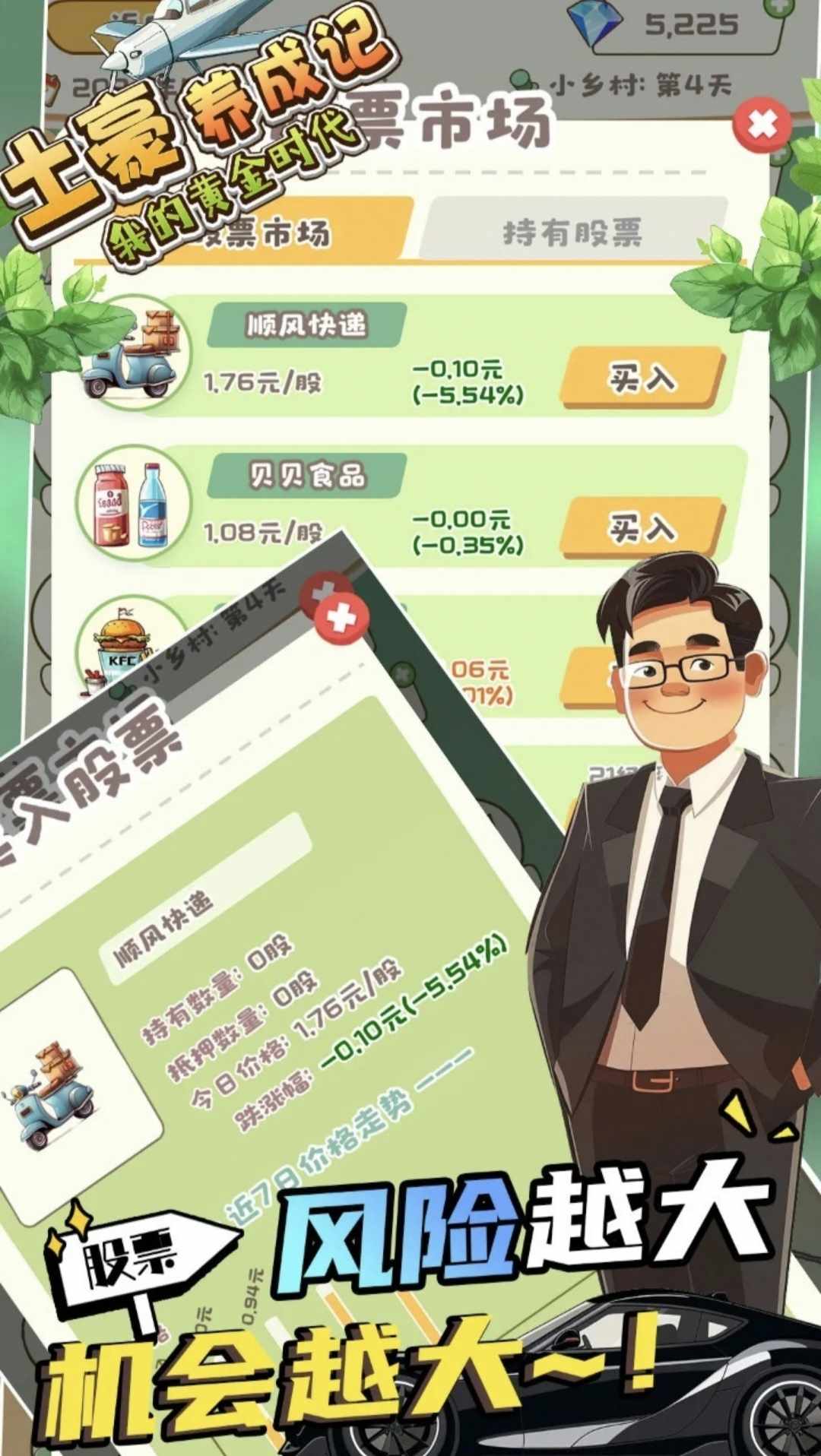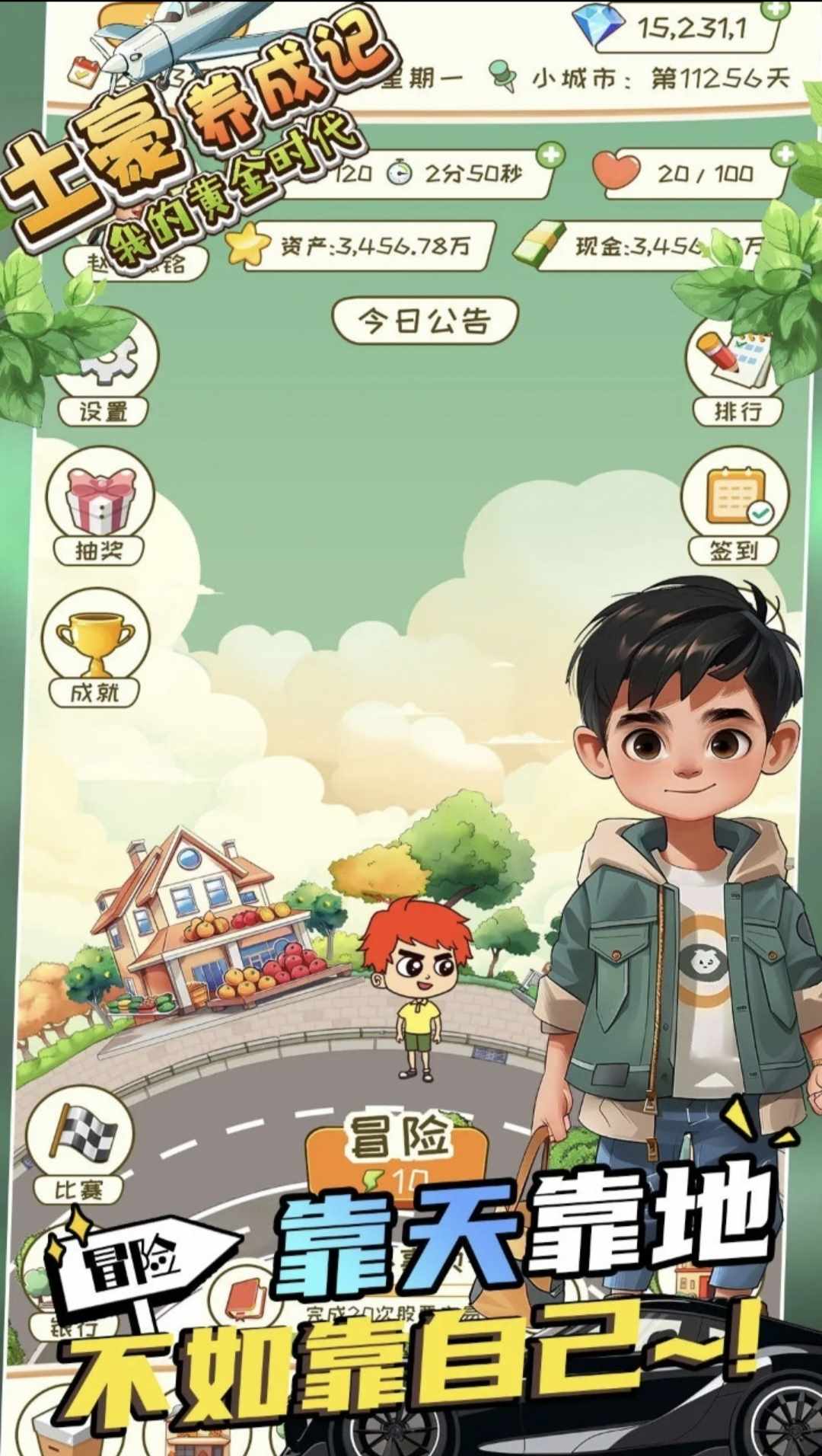 游戏中,你去实现由一个一穷二白的穷小子变成一掷千金的大土豪的梦想。游戏中,处处充满挑战,处处充满机遇。机遇是给有准备的人。抓住机会,实现你人生的逆袭。