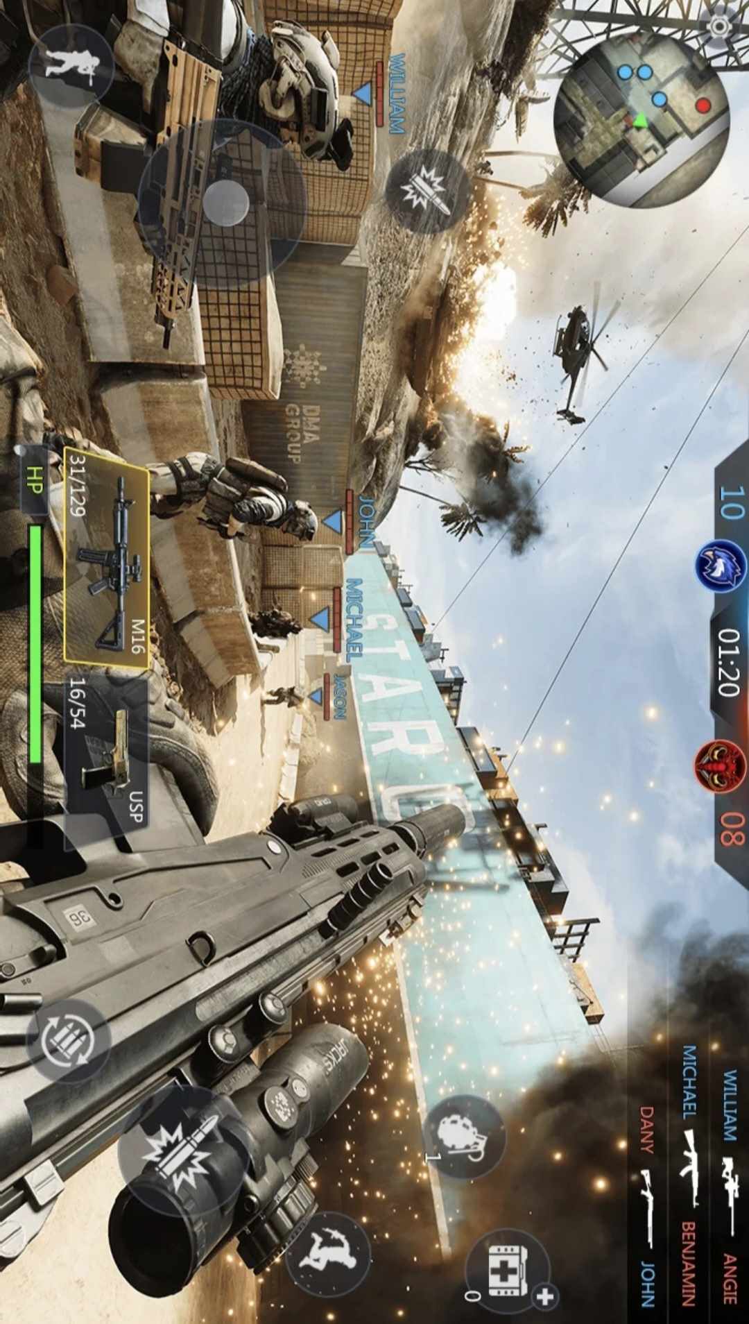 准备好了。瞄准。开火! 这是 Google Play 上排名第一的逼真 3D 团队 PvP 游戏。你是特种武器和战术小队训练有素的精英成员。配备冲锋q、狙击步q和眩晕手榴d,你将在全球执行秘密任务,铲除阻碍世界和平的邪恶集团。是时候装你的枪械了!在这款以动作为导向的第一人称射击游戏中,不要让队友掉队!现在让子弹飞!